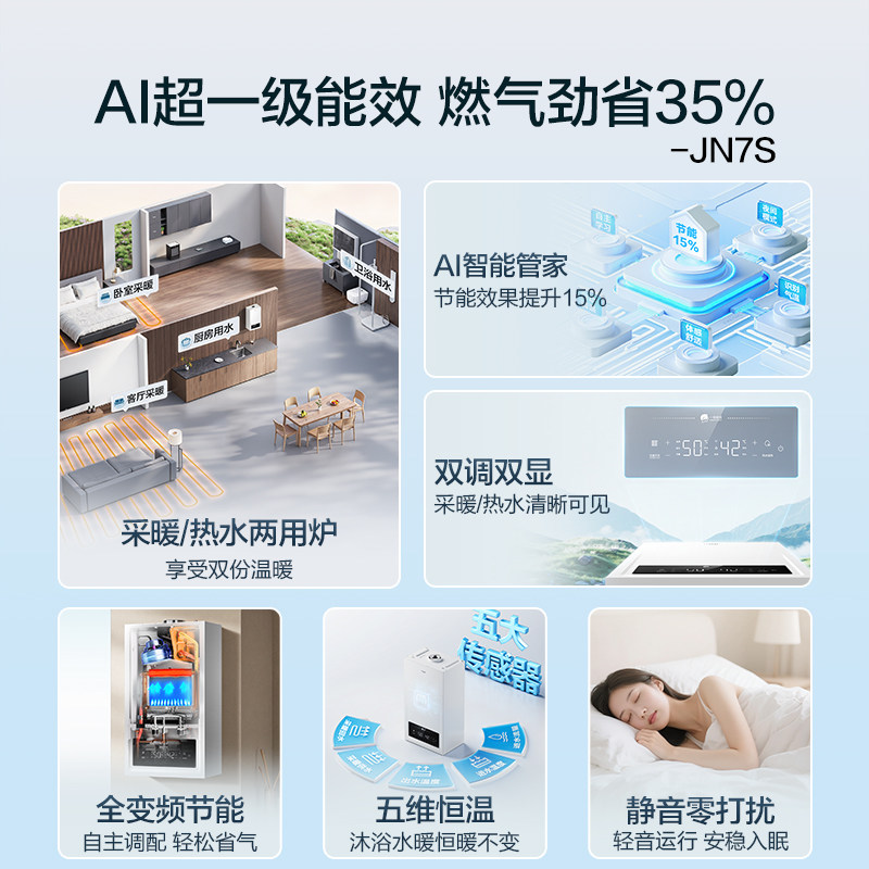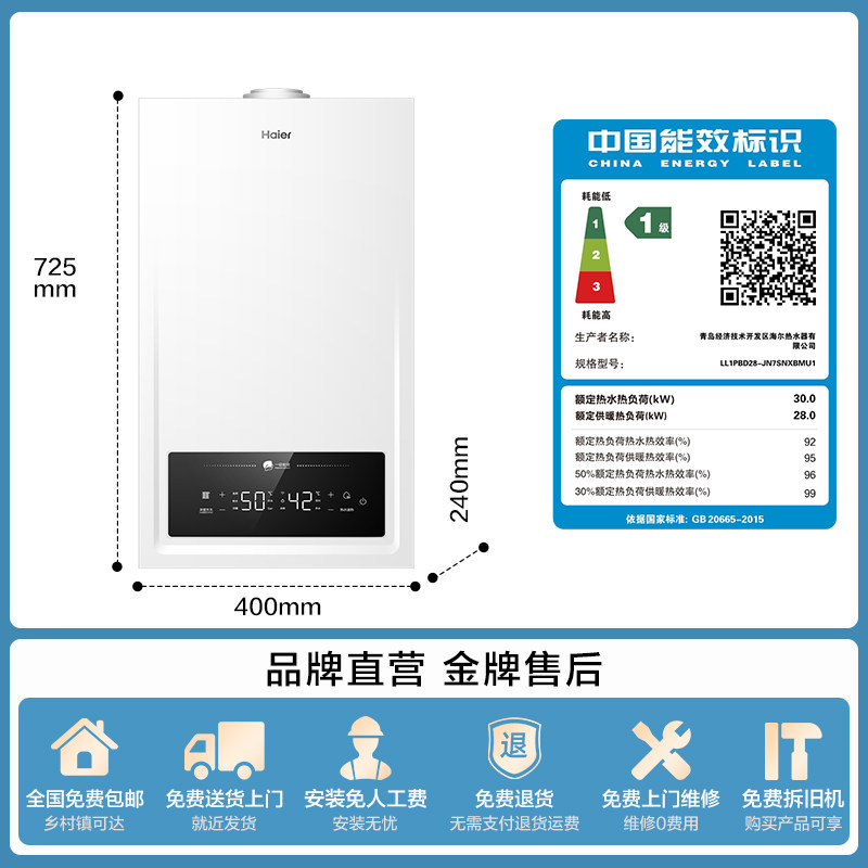 海尔燃气壁挂炉热水采暖炉官方正品家两用超一级能效JN7S地暖锅炉