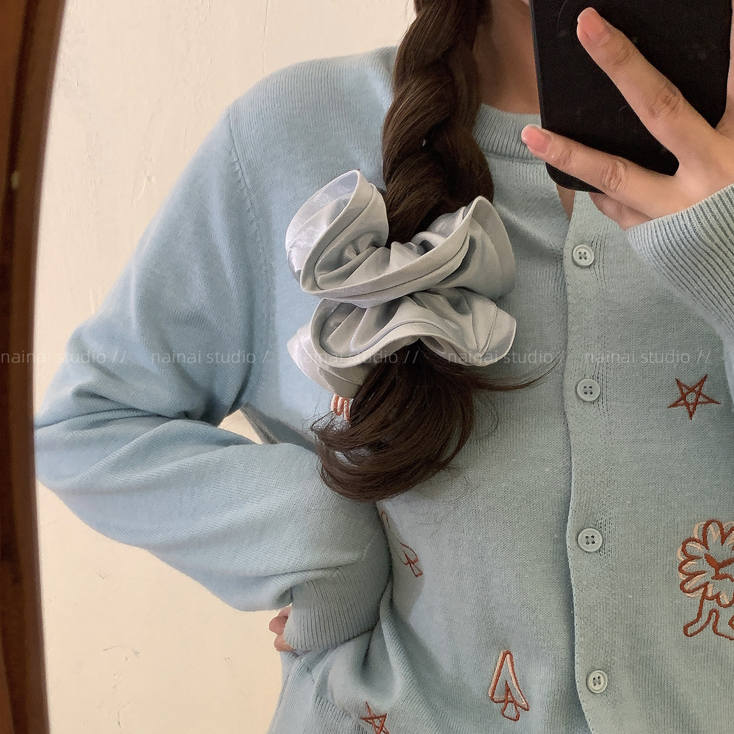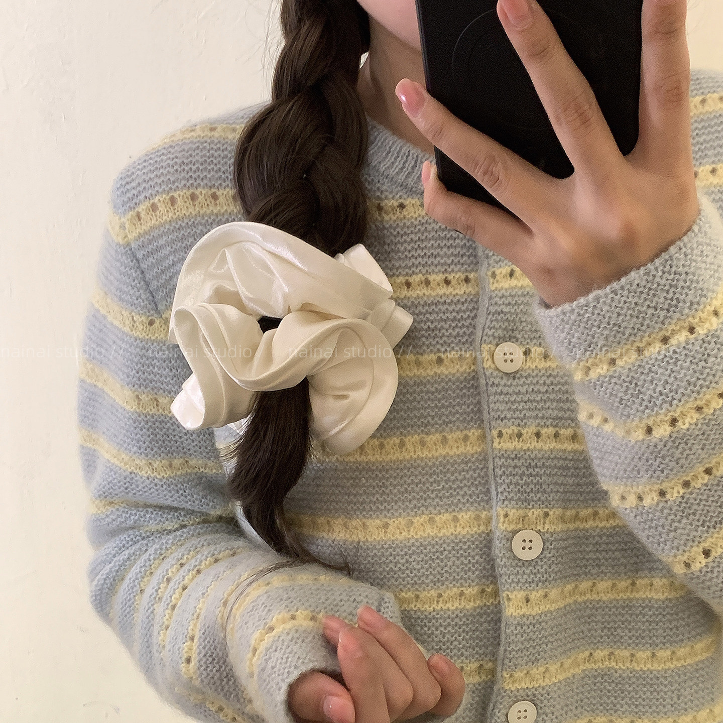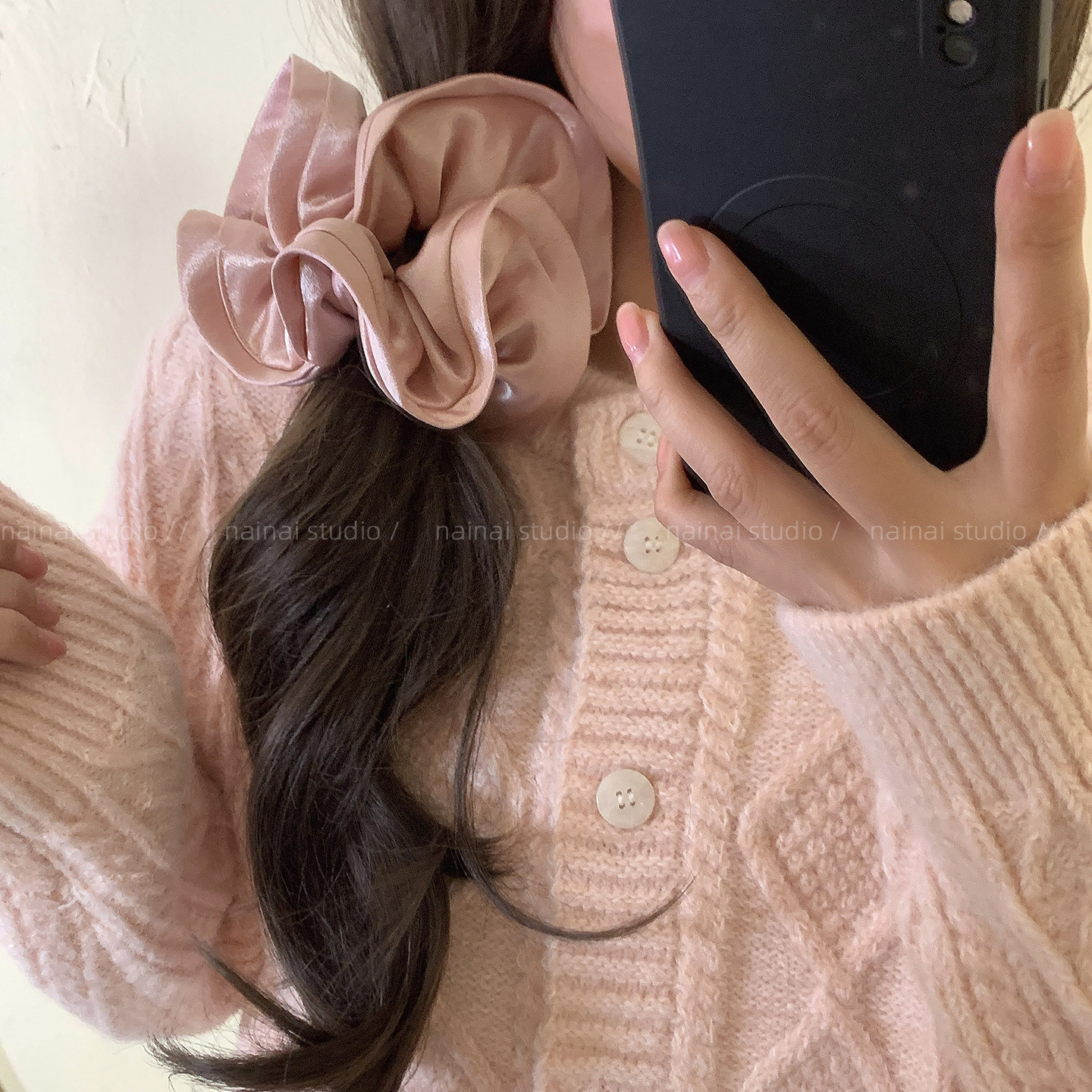 缎面花苞大肠发圈~珠光粉色丸子头低马尾发绳韩系ins高级感头绳女
