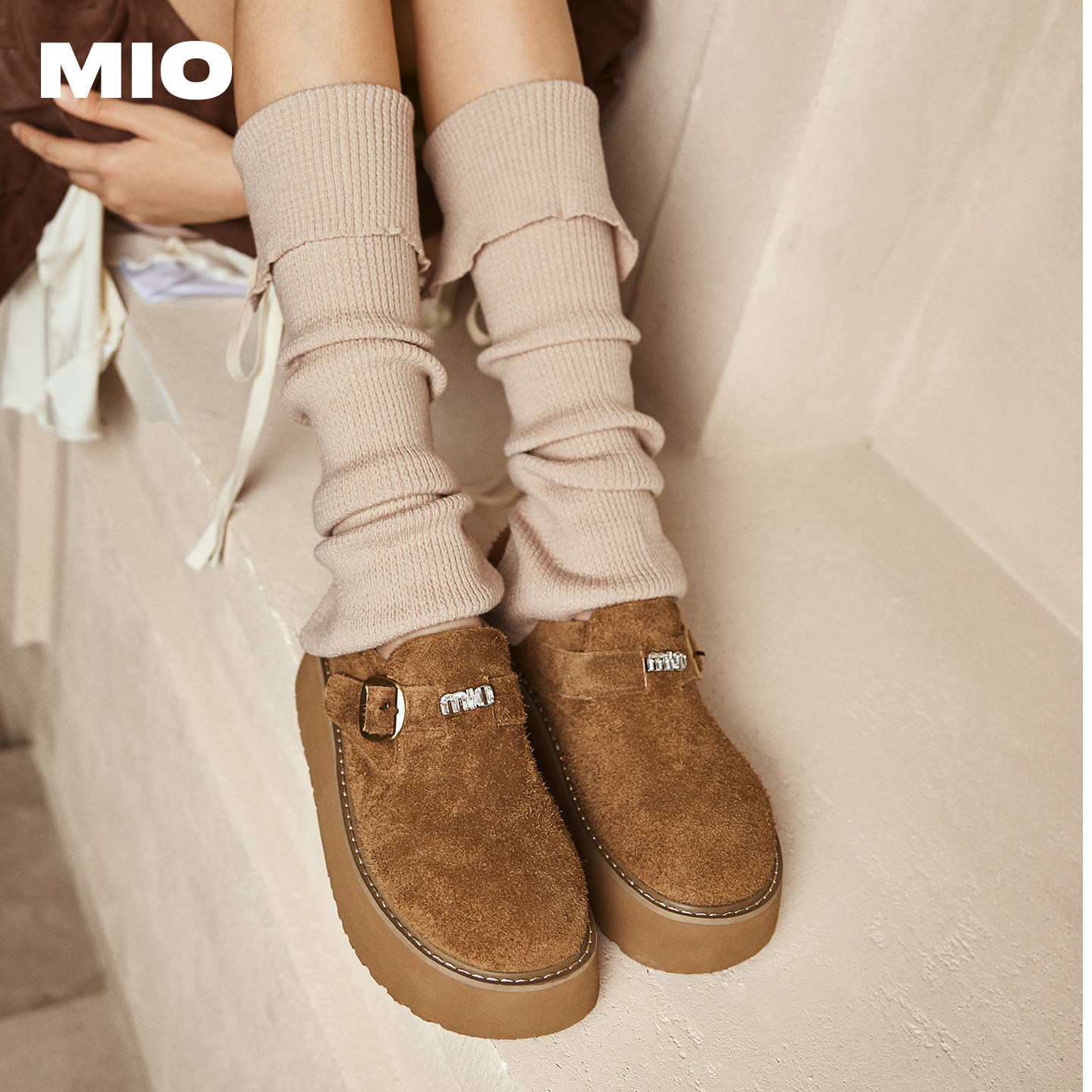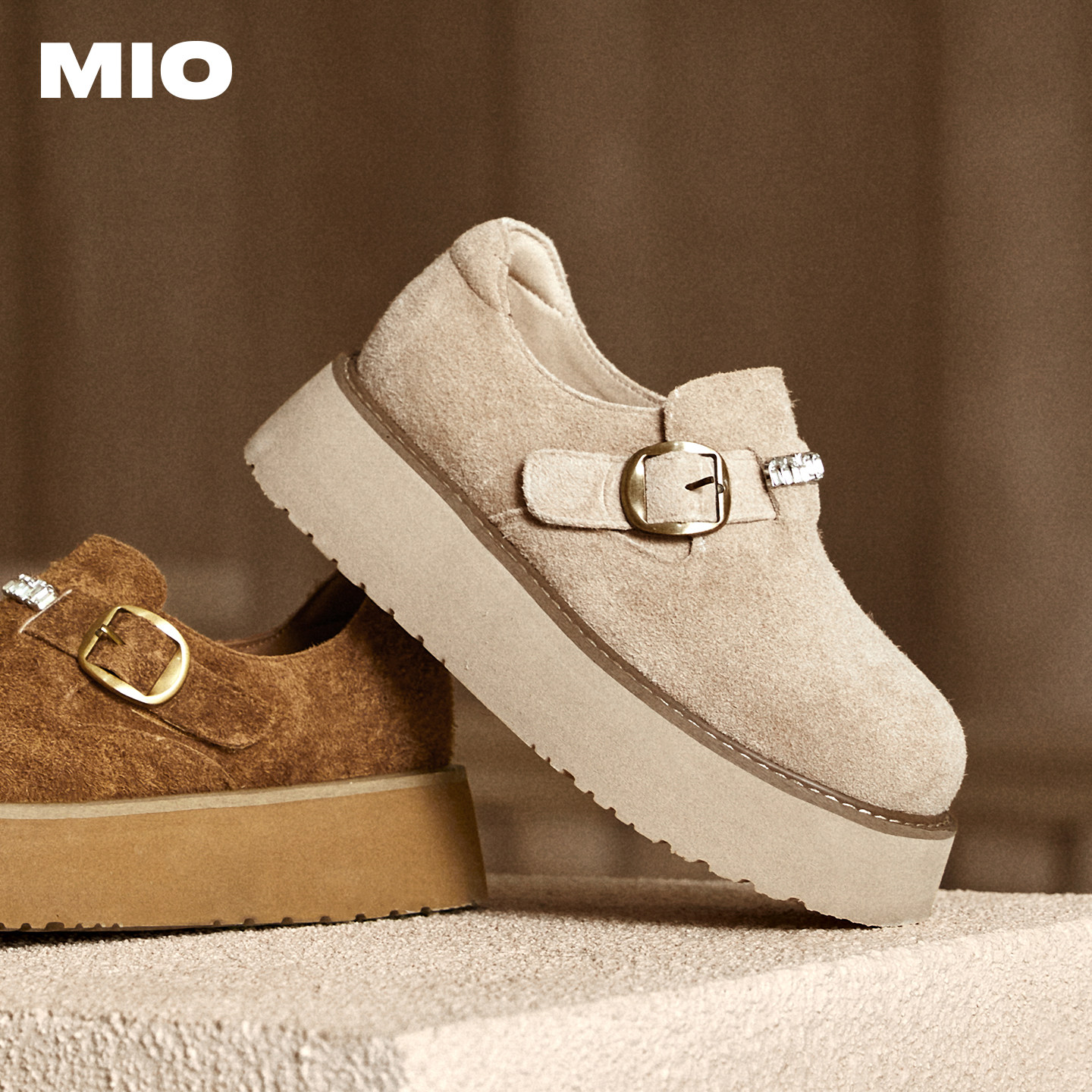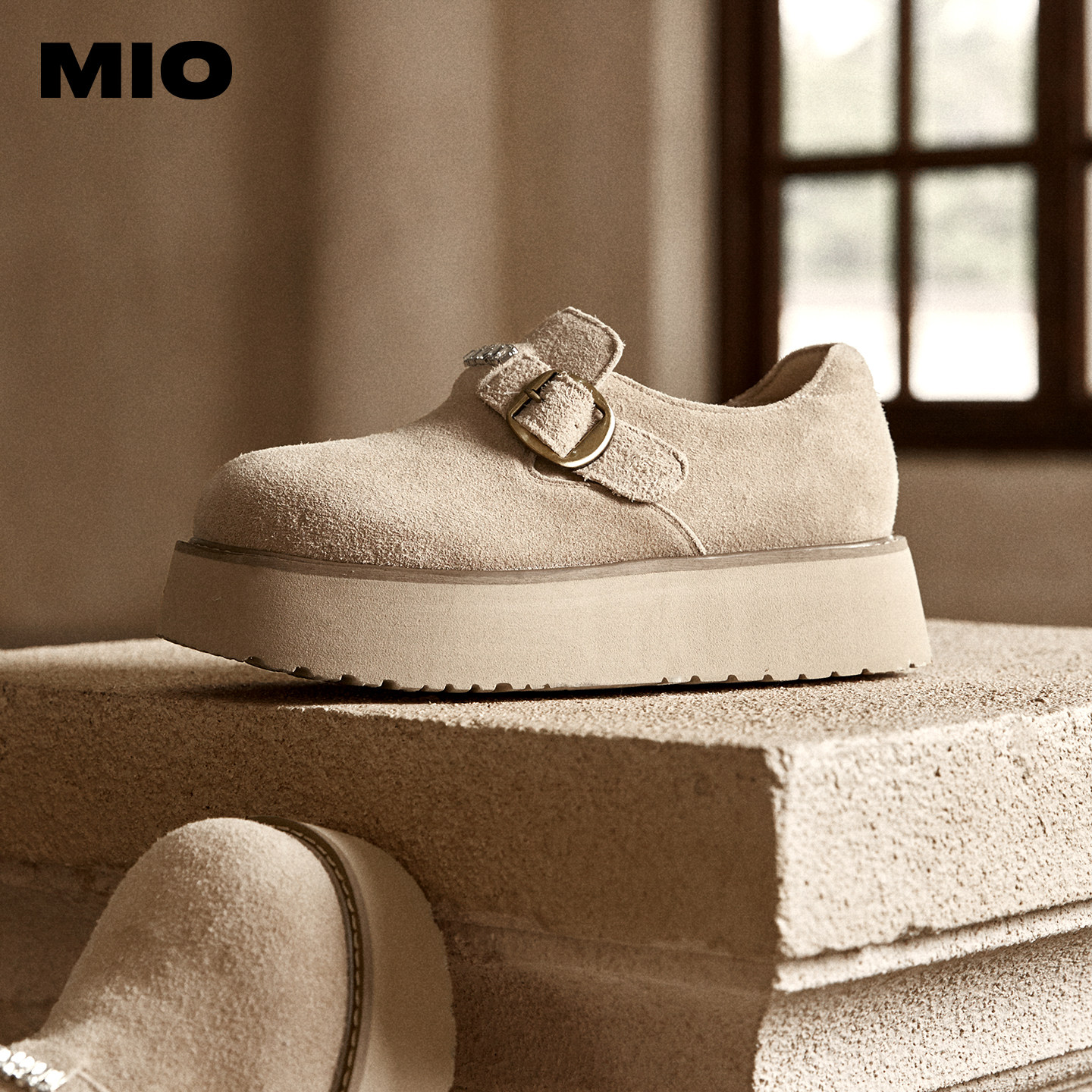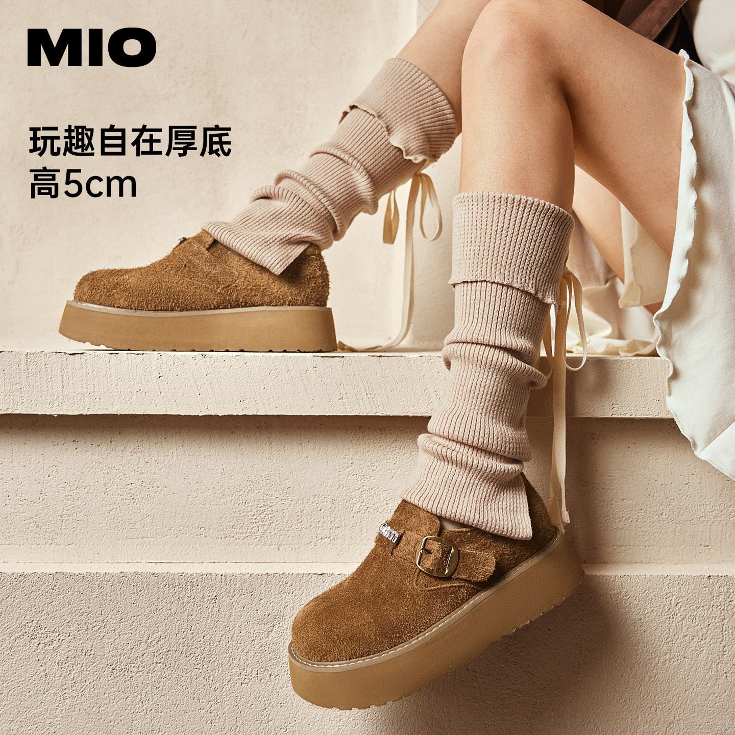 董璇同款MIO米奥勃肯女2025秋圆头厚底增高牛绒皮休闲棕色豆豆鞋