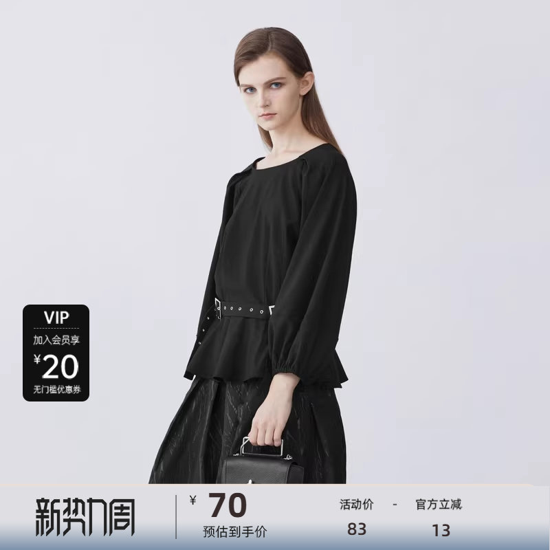 【秒杀】S·DEER圣迪奥女装秋休收腰抽褶泡泡袖衬衫S21380536