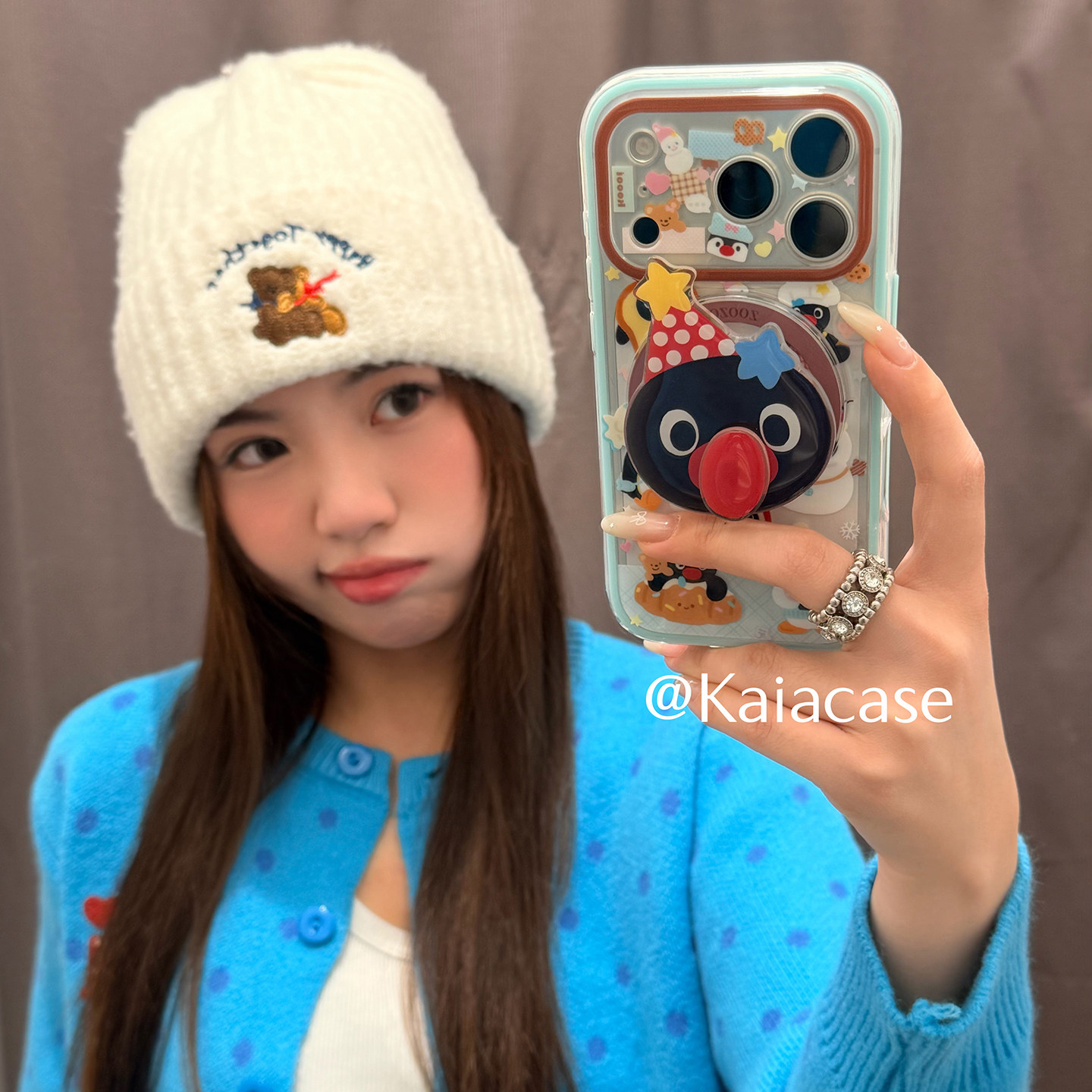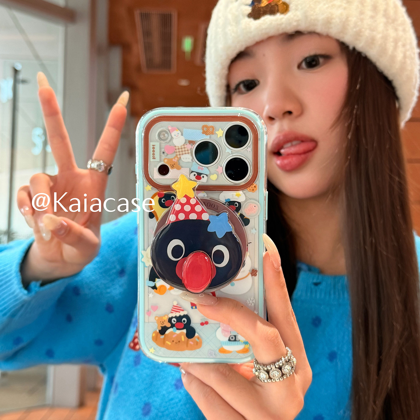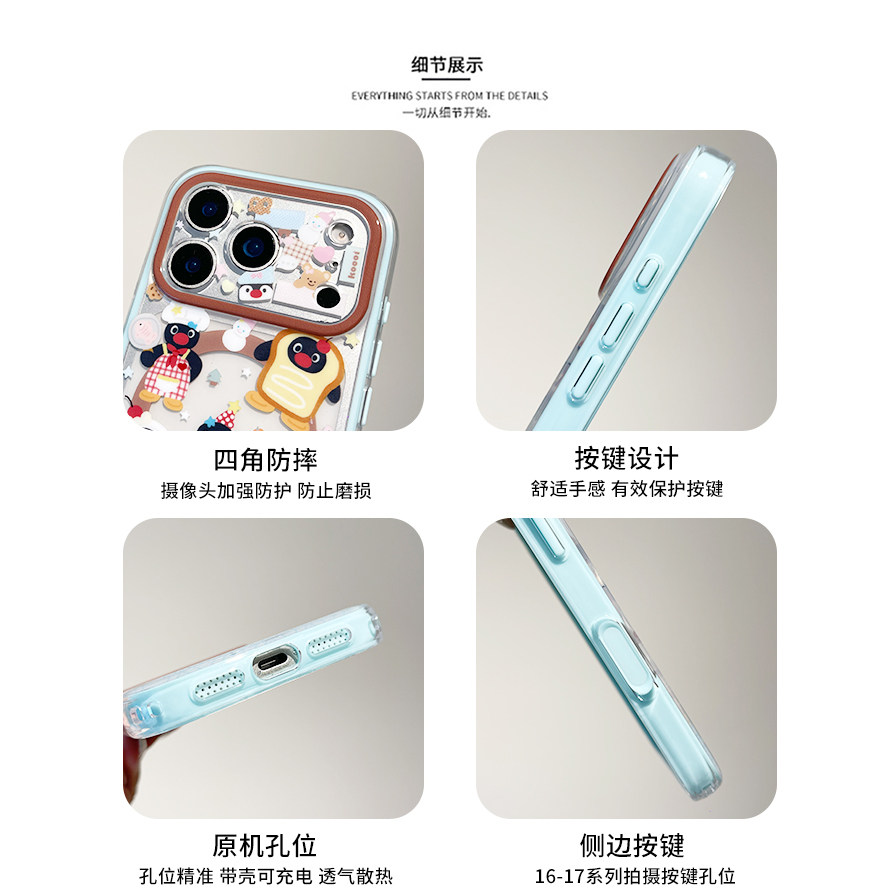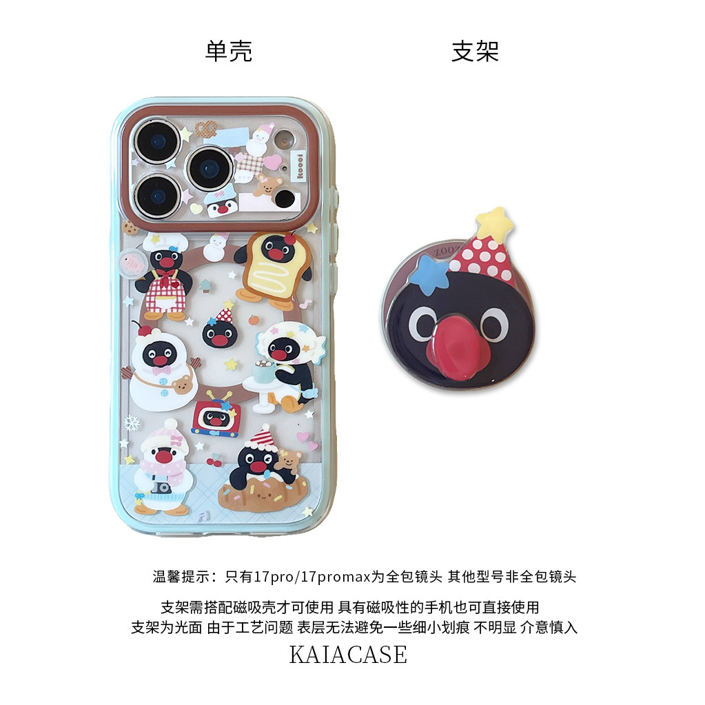 kaia 趣味卡通企鹅旋转鼻子适用苹果17promax手机壳iphone16pro新款13女14pro磁吸支架15pro二合一防摔手机套