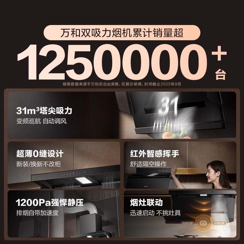 [品牌补贴]万和顶侧双吸抽油烟机家用厨房烟机燃气灶蓝光杀菌套