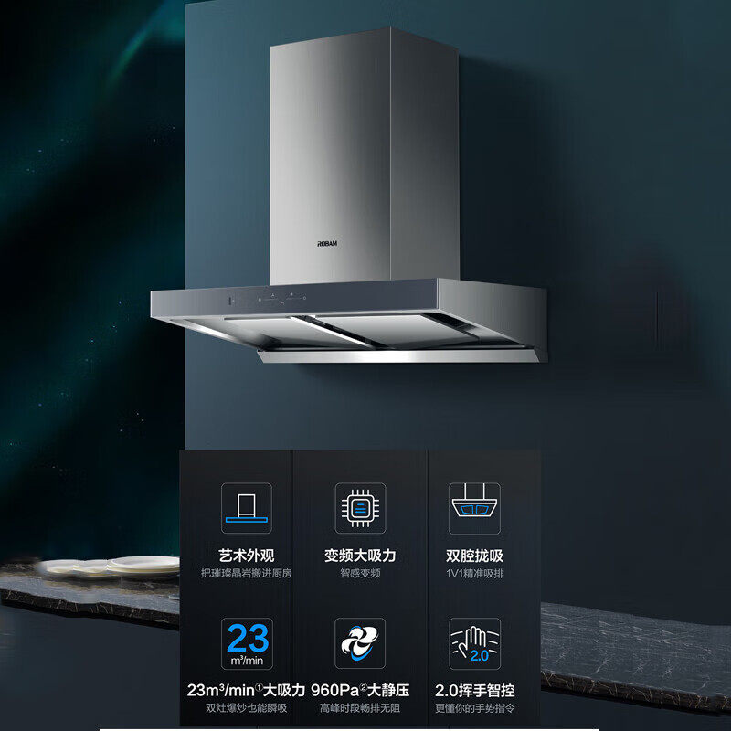老板抽油烟机 AES3D75S 顶吸23吸力 欧式变频大吸力油机烟灶套装