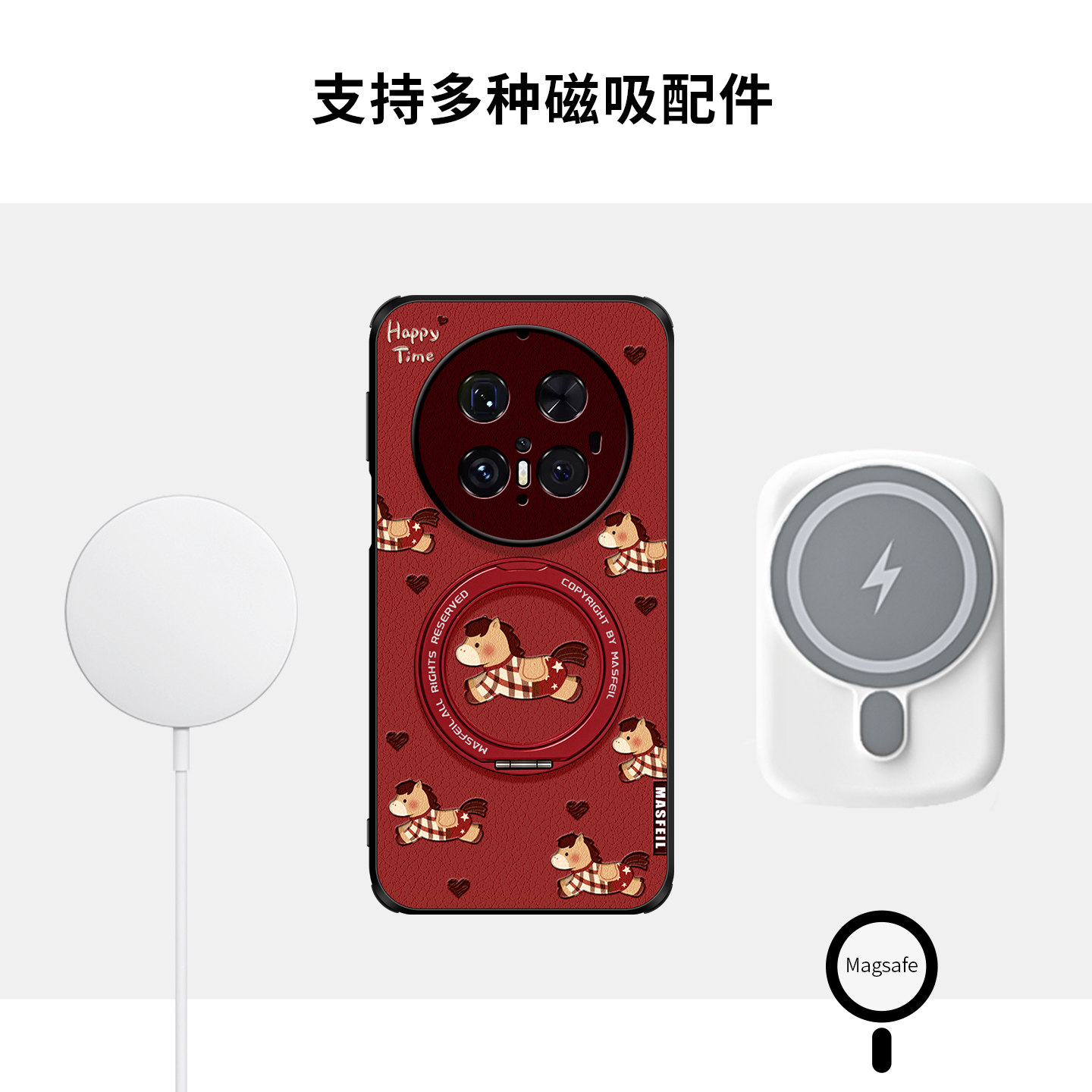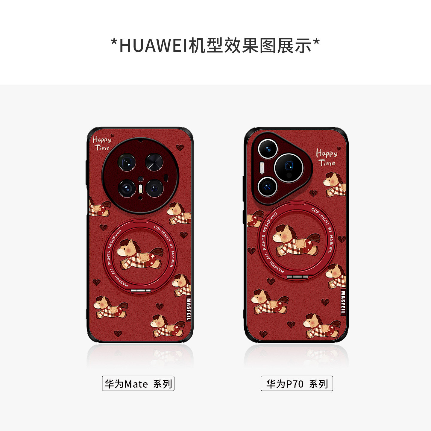 MASFEIL × 复古小马适用华为Mate80Promax手机壳mt70新款Pura70磁吸支点mate60por支架Ho5全包p80新年红色