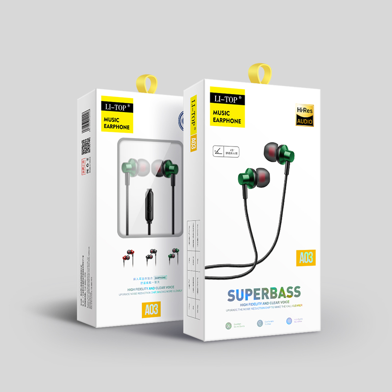 力拓A03入耳式3.5mm重低音时尚听歌耳塞线控通话带麦有线耳机批发