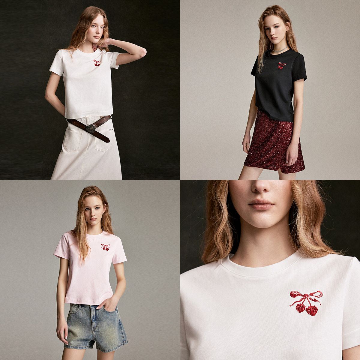 ONLY2026春季新款纯棉甜美舒适重工立体亮片水果短款正肩T恤女