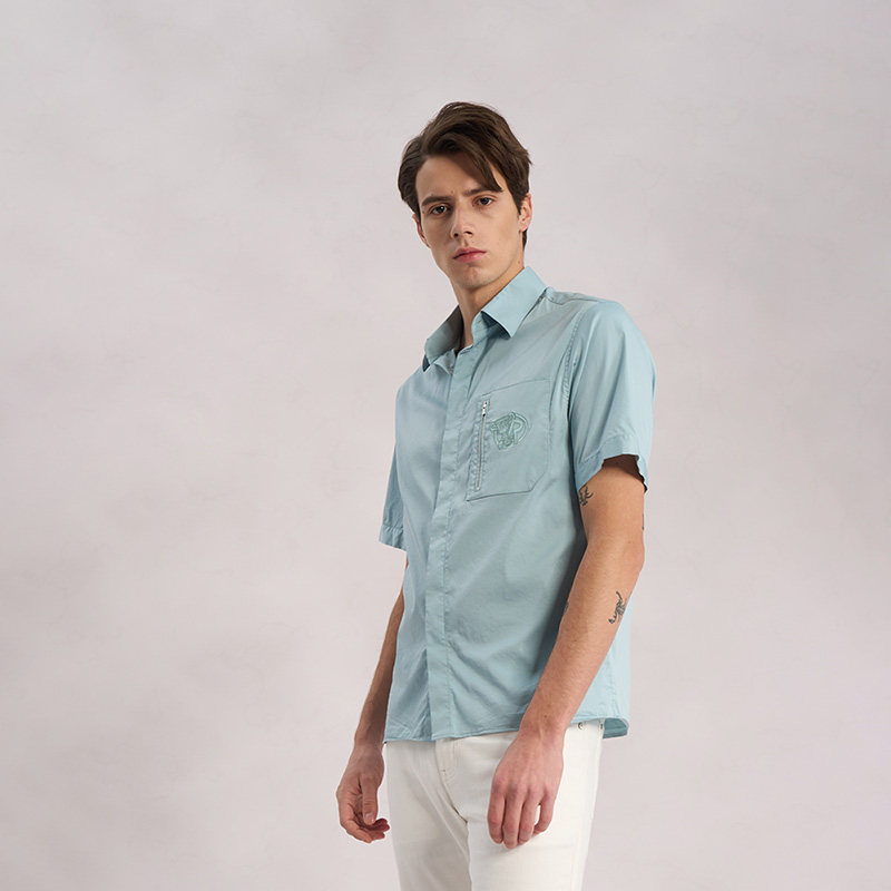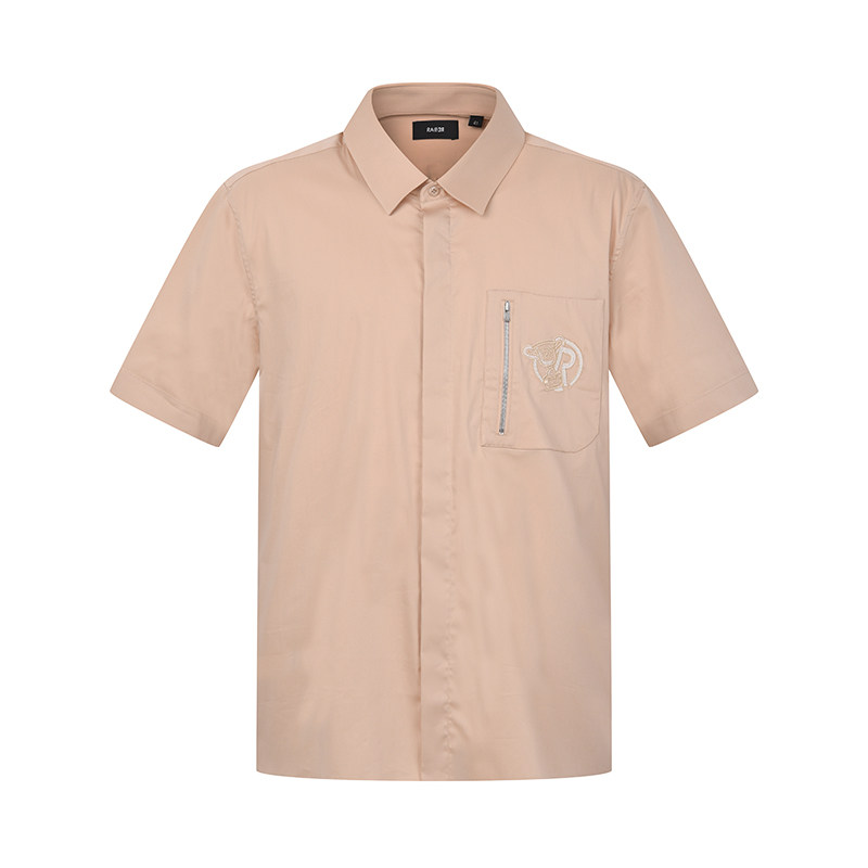 RARE威雅男装夏季新款拉链工装口袋蓝色商务休闲男士短袖衬衫