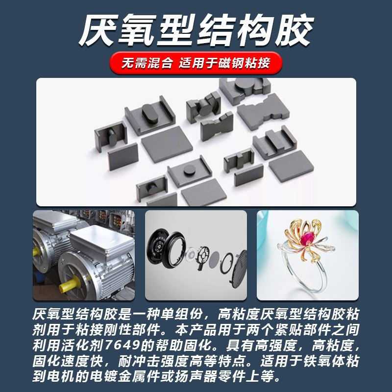 324-326胶水厌氧结构胶高强度耐高温粘磁铁磁钢电机快干金属强力汽车内饰后视镜底座磁铁钢材玻璃7649促进剂