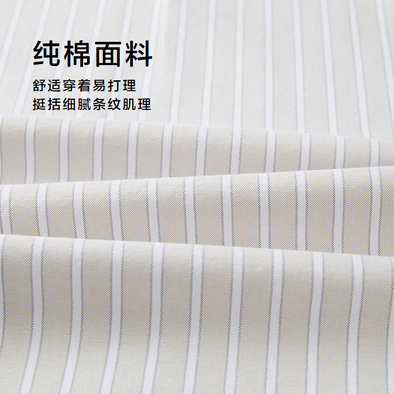 HLA/海澜之家panda wowo熊猫短袖休闲衬衫26春夏新纯棉条纹衬衣男