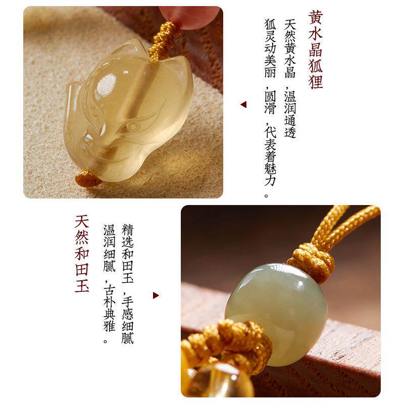 优化黄水晶手机链女高端精致狐狸复古文艺范手机挂绳挂件小众