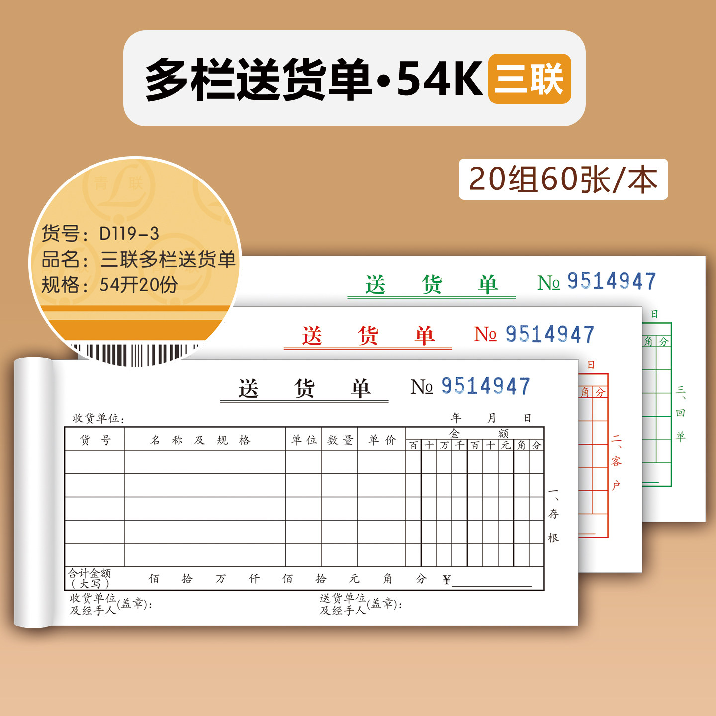 青联D系列送货单二联三联四联单优质无碳复写纸手写加厚多栏式发货单销货清单两联出库单据销售清单出货单本