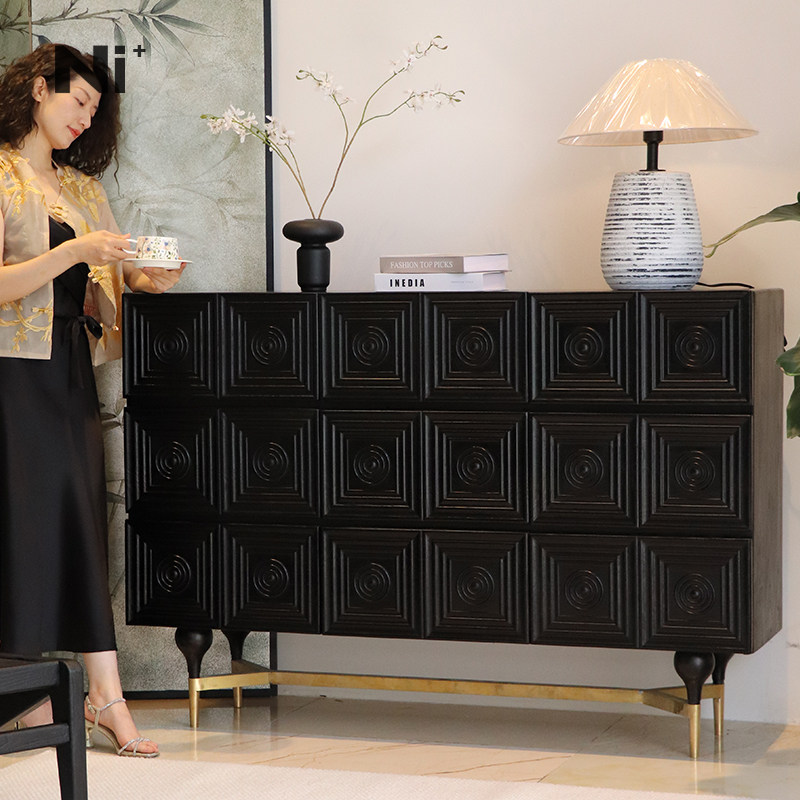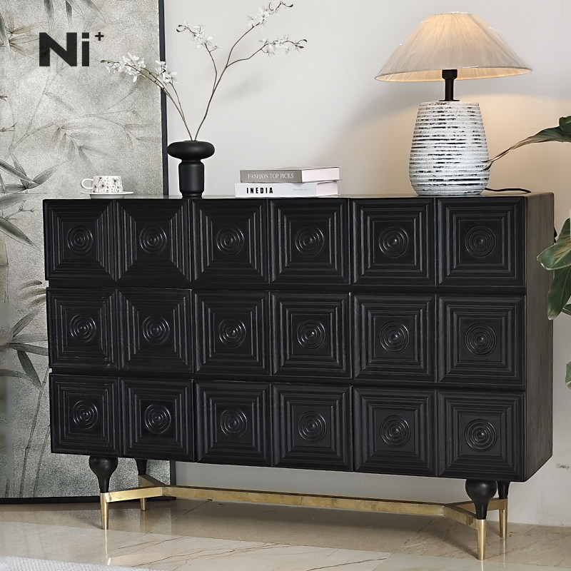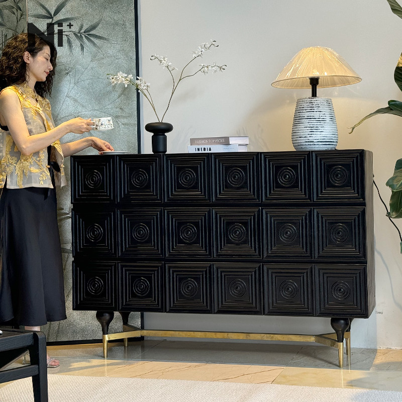 Ni+尼家中古风斗柜实木餐边柜客厅装饰柜侘寂风边柜卧室收纳柜子