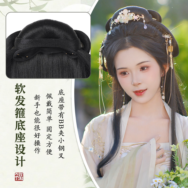 古风汉服假发髻盘发一体式发包古装明制唐风懒人造型垫发全套头饰
