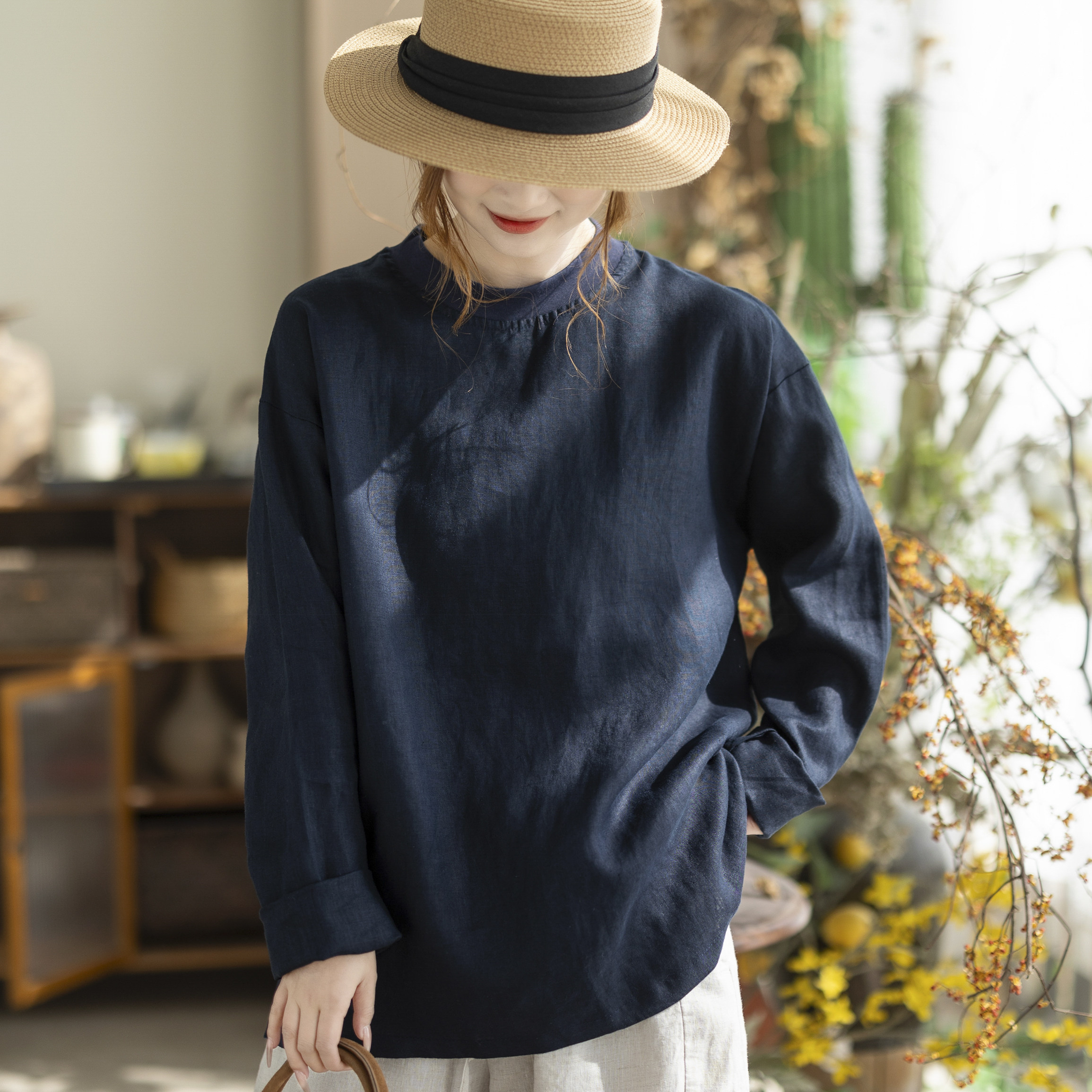 咖咪羽春夏新款白色汉麻衬衫女宽松长袖通勤休闲透气女装上衣小衫
