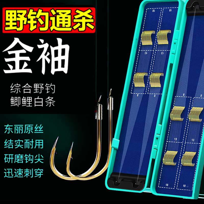 进口正品盒装金袖鲫鱼勾钩套装全套组合袖钩散装混装溪流钩钓鱼钩