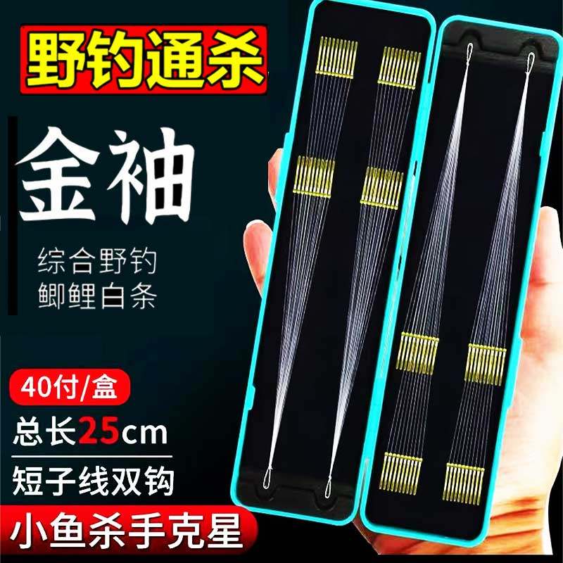 鱼钩绑好短子线双钩成品套装钓鱼袖钩金海夕金袖渔具野钓鲫鱼钩