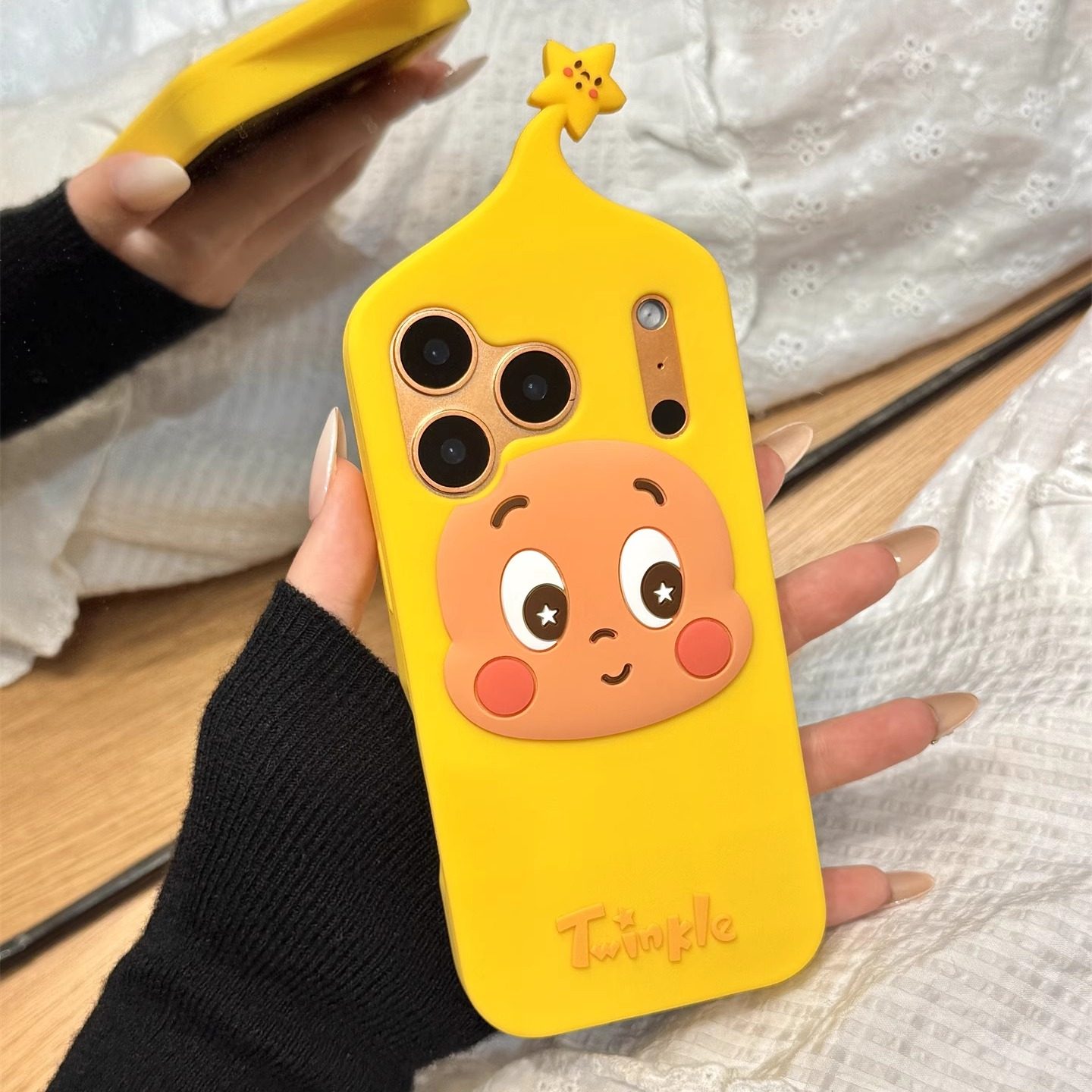 奶呼呼油画腮红大脸星星小人适用于iphone17promax苹果14手机壳15新款16pro女13可爱17pm磨砂硅胶创意防摔套