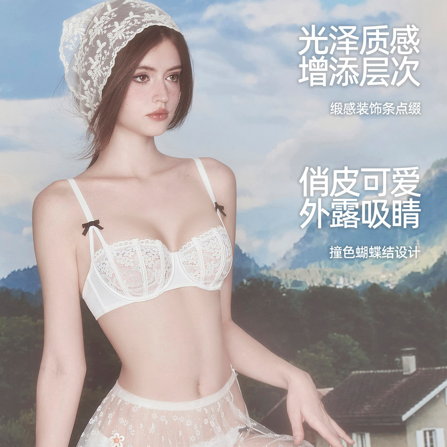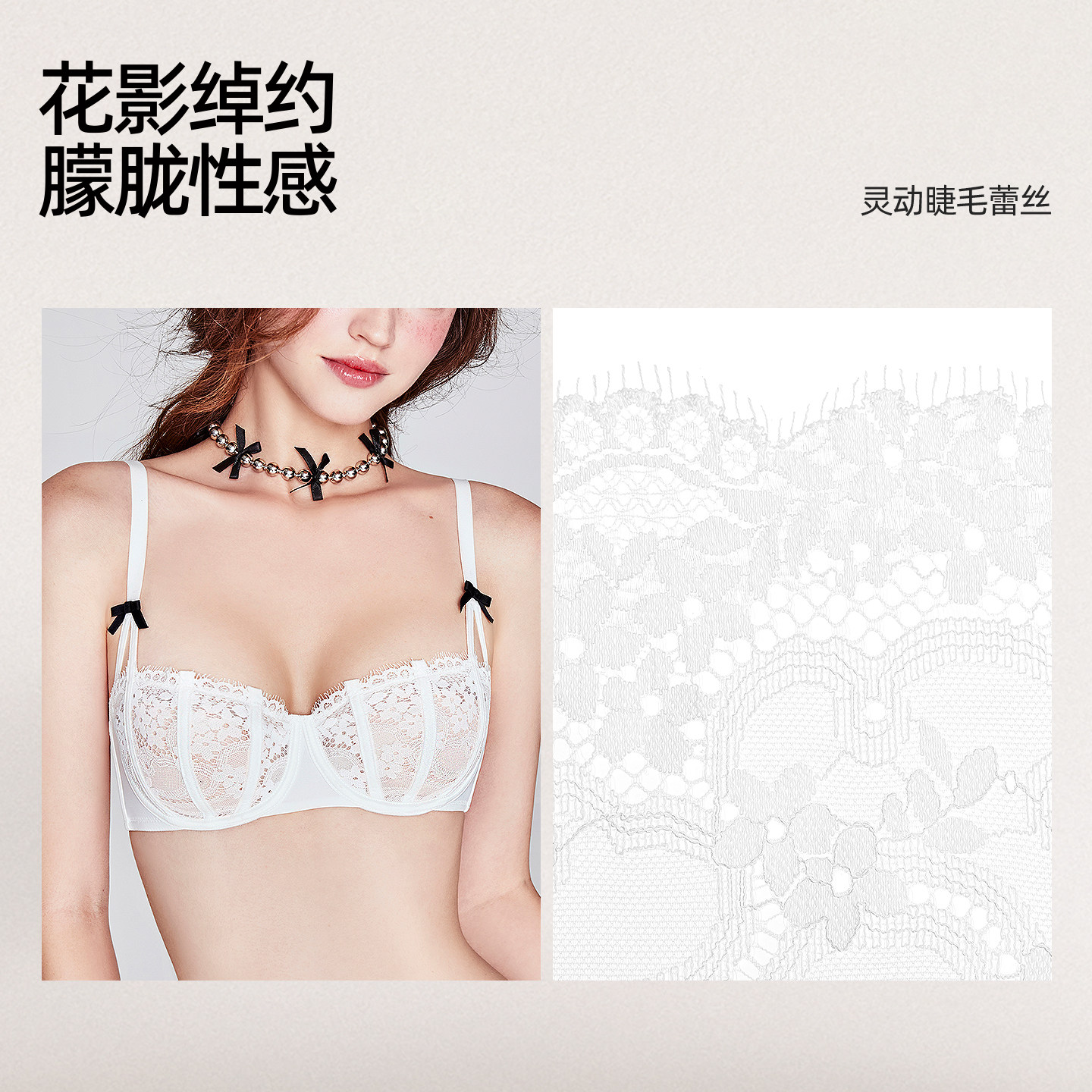 好奇蜜斯睫毛内衣女性感薄防下垂法式纯欲蕾丝文胸罩套装白兔耳杯