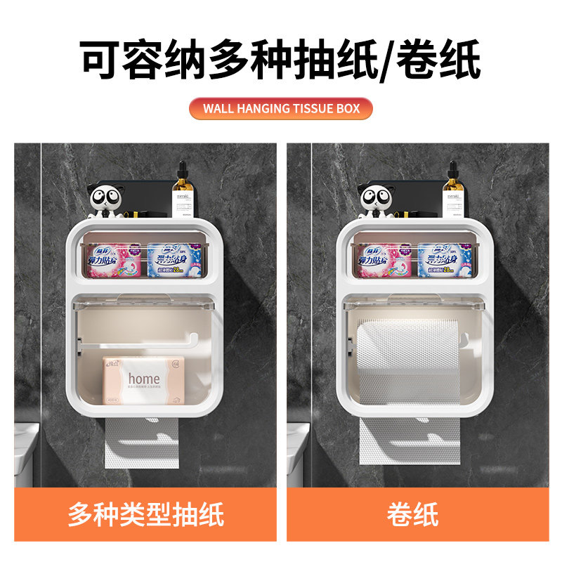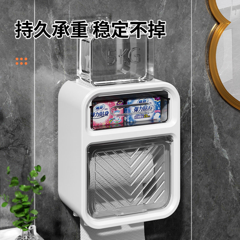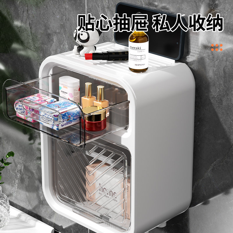 卫生间厕纸盒纸巾盒奶油白大号防水防尘带纸轴