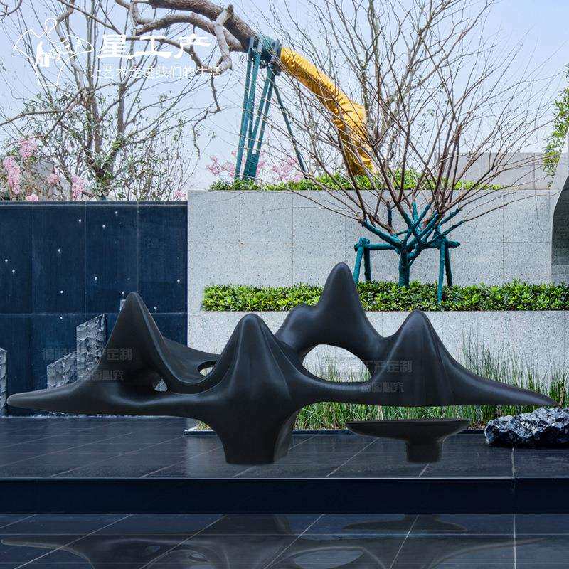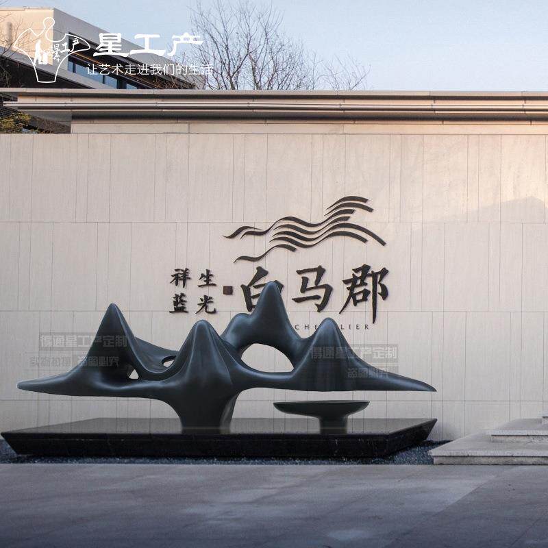 地产小区不锈钢仿真假山景观金属雕塑园林户外售楼大型太湖石摆件