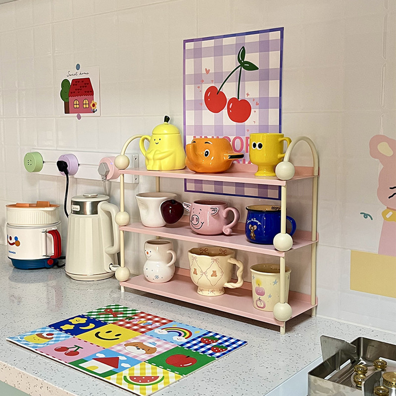 铁艺杯架多巴胺收纳架厨房桌面置物架分层多层台面客厅玄关好物