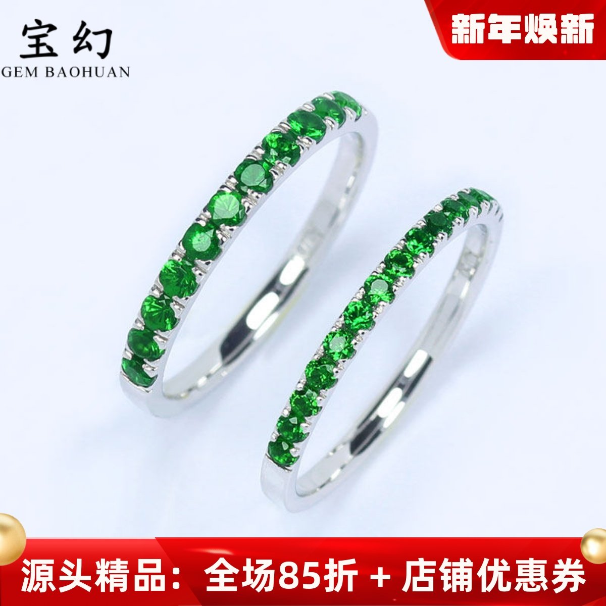 18K白金天然翠绿沙弗莱戒指 铬钒钙铝榴石绿色宝石排戒尾戒指环