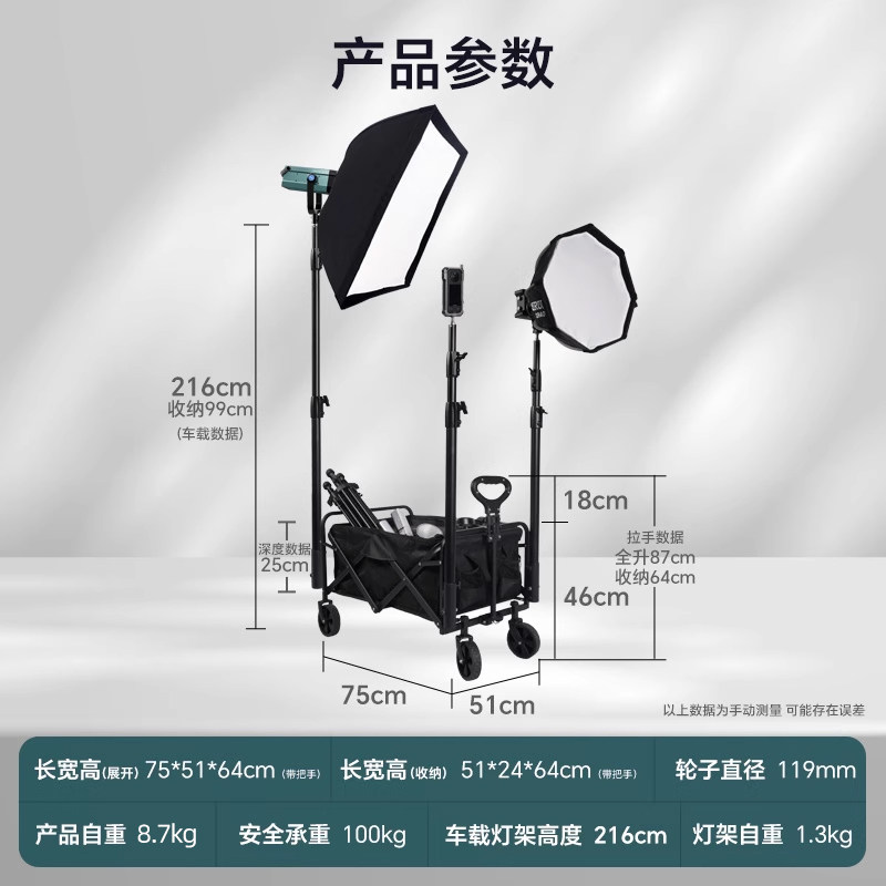 思锐可折叠摄影车手拉行李车户外移动摄影灯架拍摄器材收纳漫展活动露营车防雨单兵拍摄可收纳相机补光灯支架