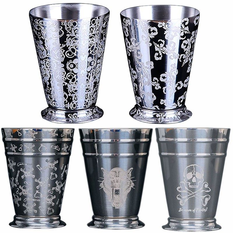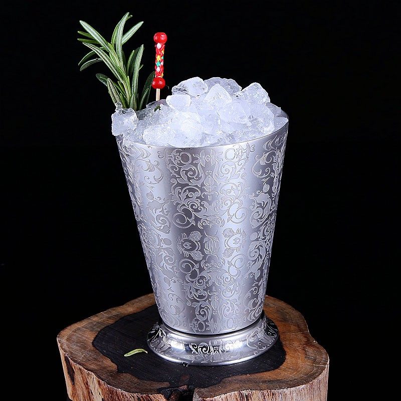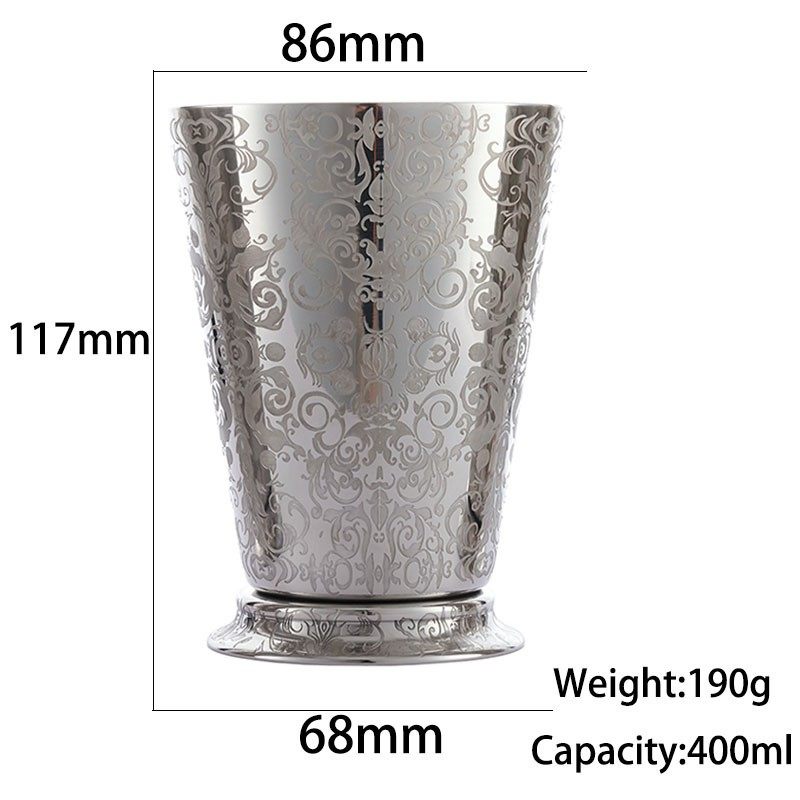 304不锈钢朱丽普杯鸡尾酒杯欧式莫斯科骡子精美刻花酒吧金属酒杯