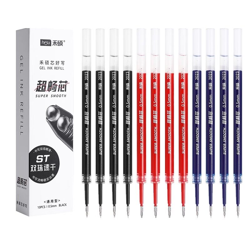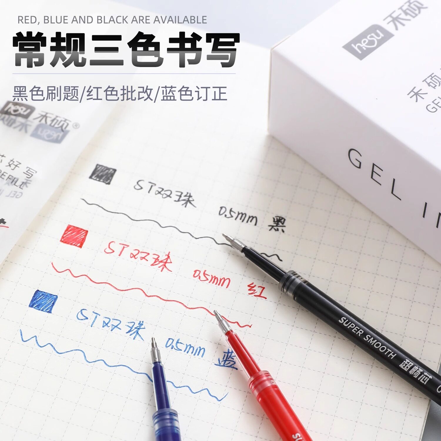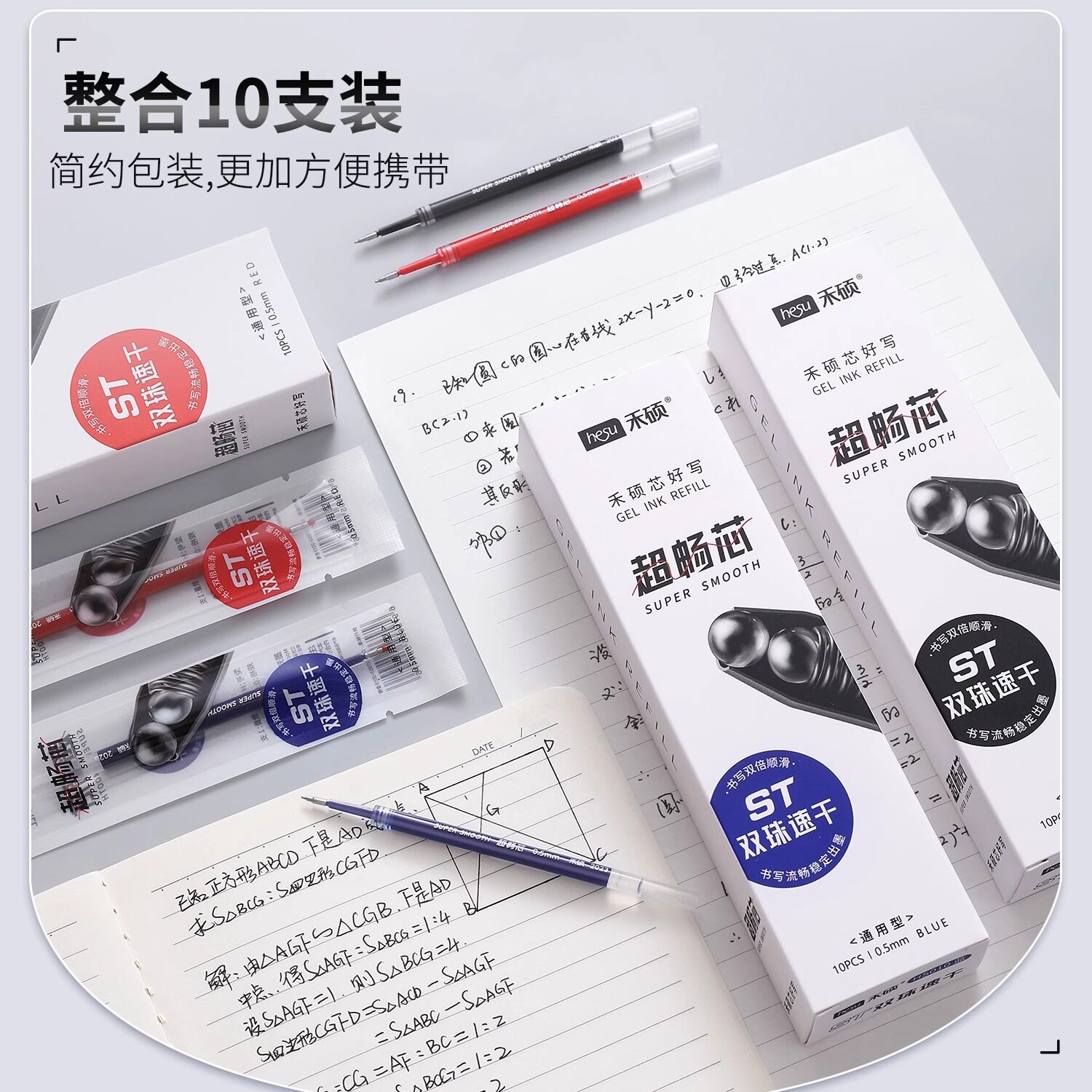 禾硕按动替芯红蓝黑ST针管双珠头速干顺滑0.5mm中性笔通用替换芯