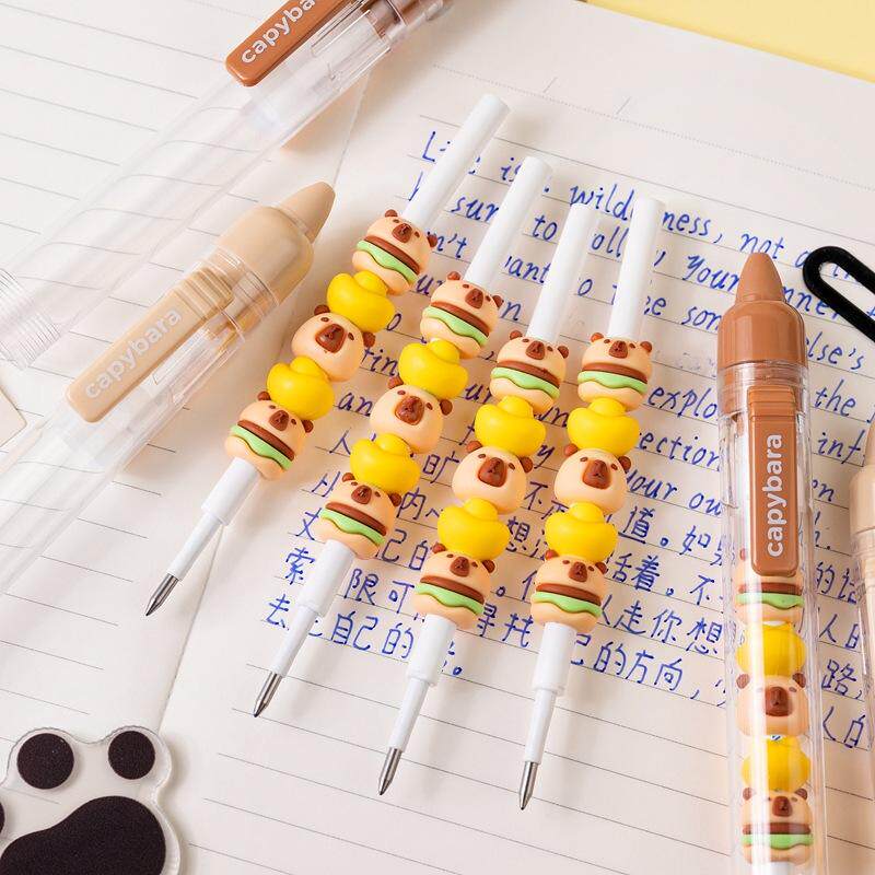 一木林网红卡皮巴拉叠叠乐可擦笔蓝串串笔黑色0.5子弹头可爱小兔