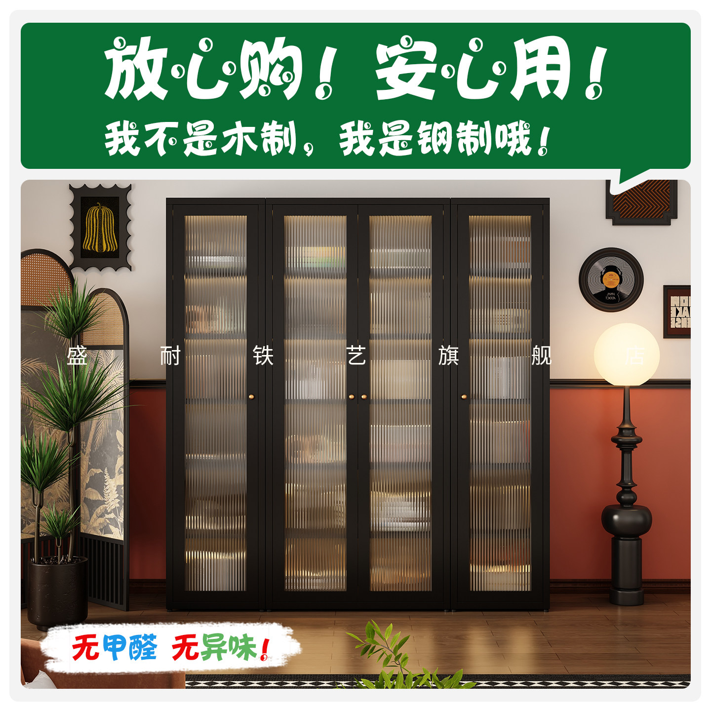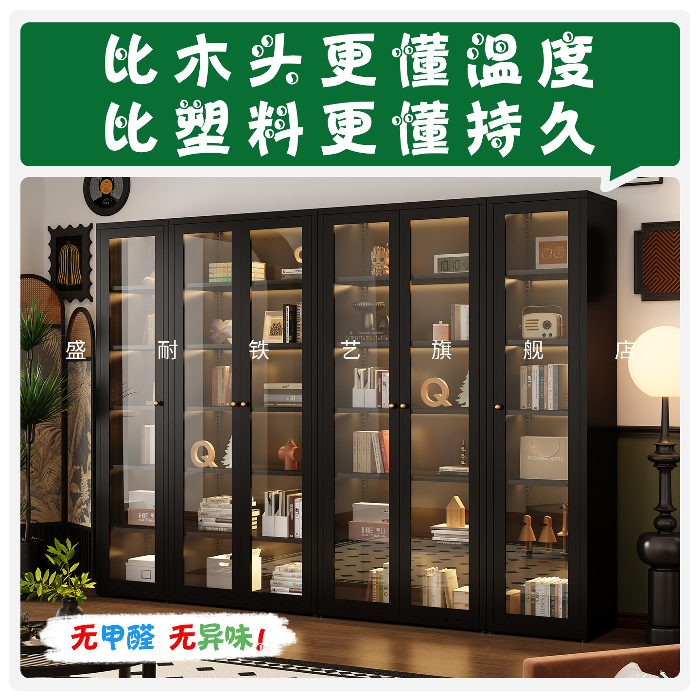 钢制书柜儿童书架落地家用客厅亚克力透明防尘门展示柜储物置物架
