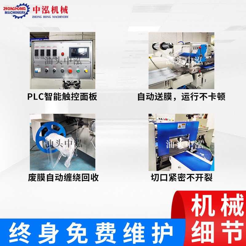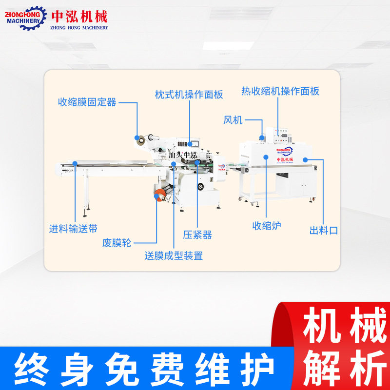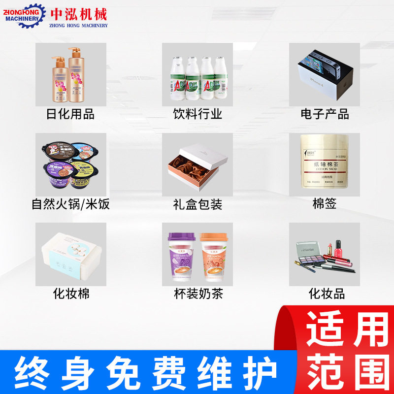 速食方便面自热火锅纸盒PE盒子瓶子化妆棉塑封机枕式热收缩包装机