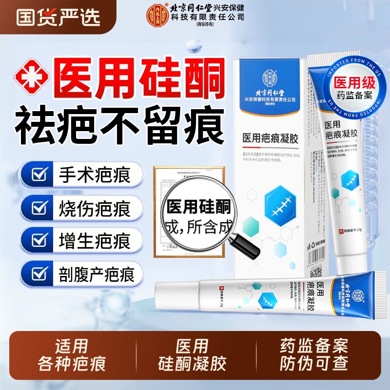 北京同仁堂祛疤膏除去疤痕修复硅酮凝胶医用烫伤手术剖腹产增生