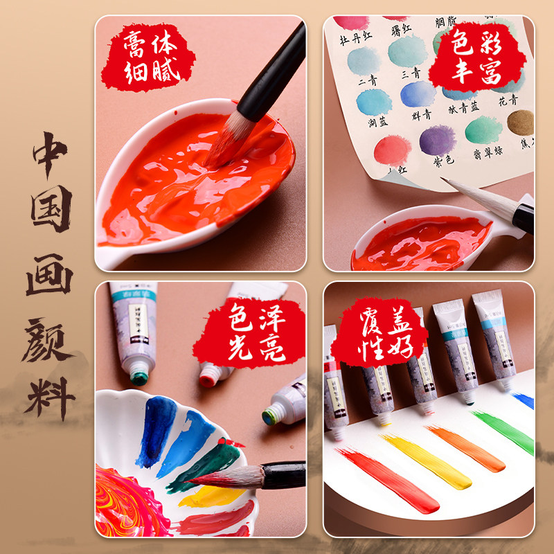 晨光中国画颜料初学者套装毛笔小学生儿童入门材料工笔画宣纸国画成人水墨画工具套装国画用品工具箱全套正品