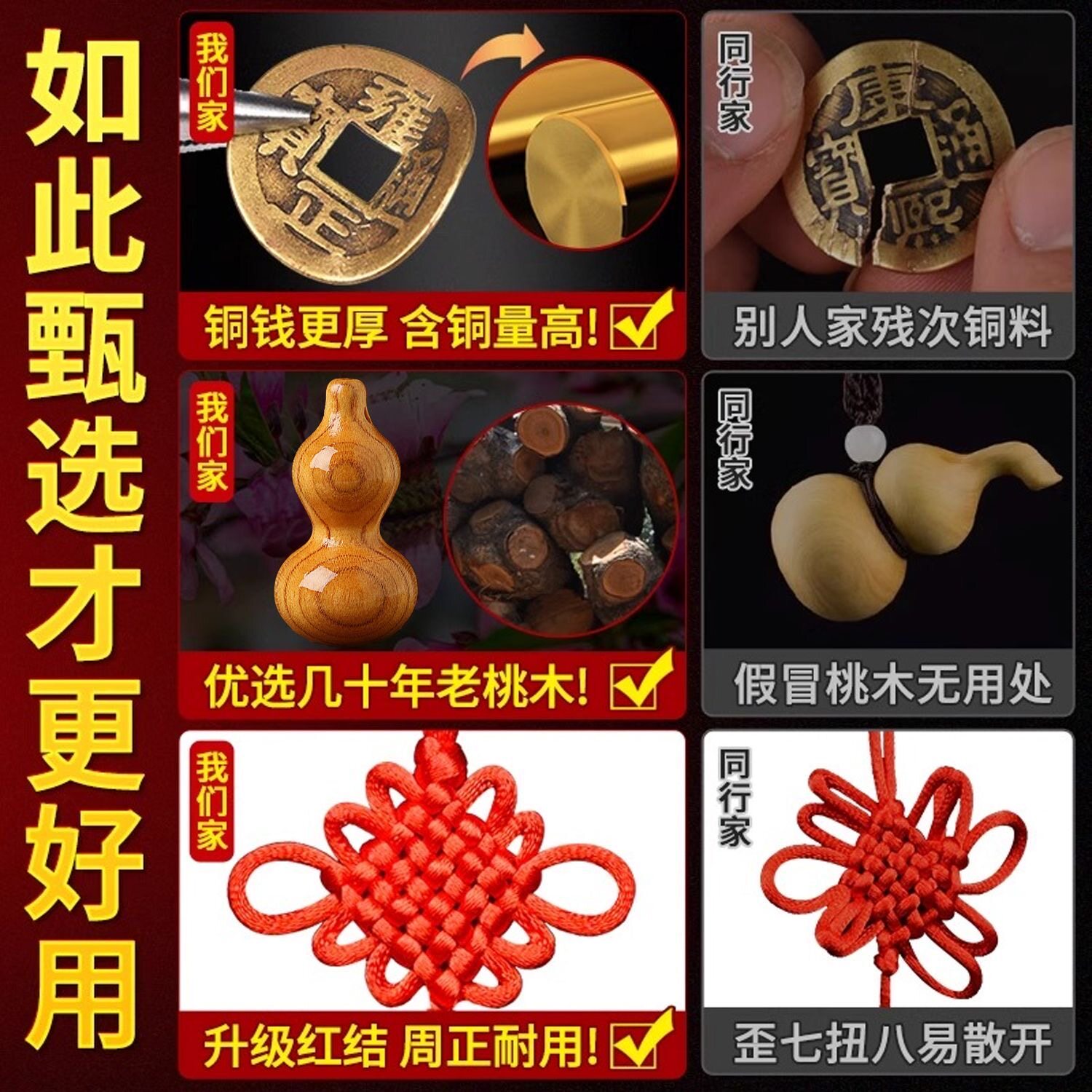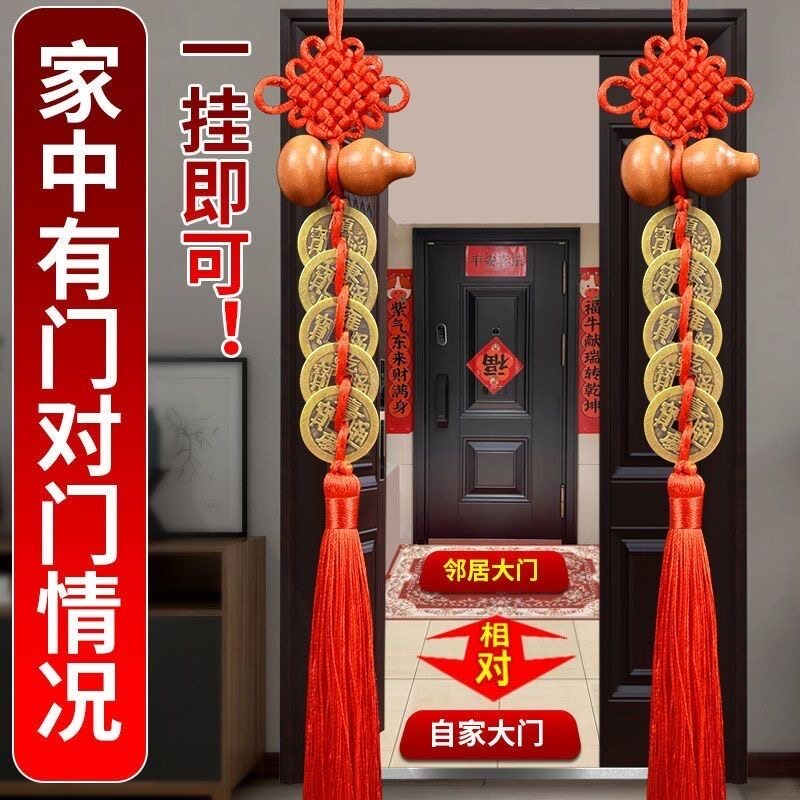 五帝钱挂件葫芦门对门桃木真品纯铜钱串大门口卧室压门槛中国结