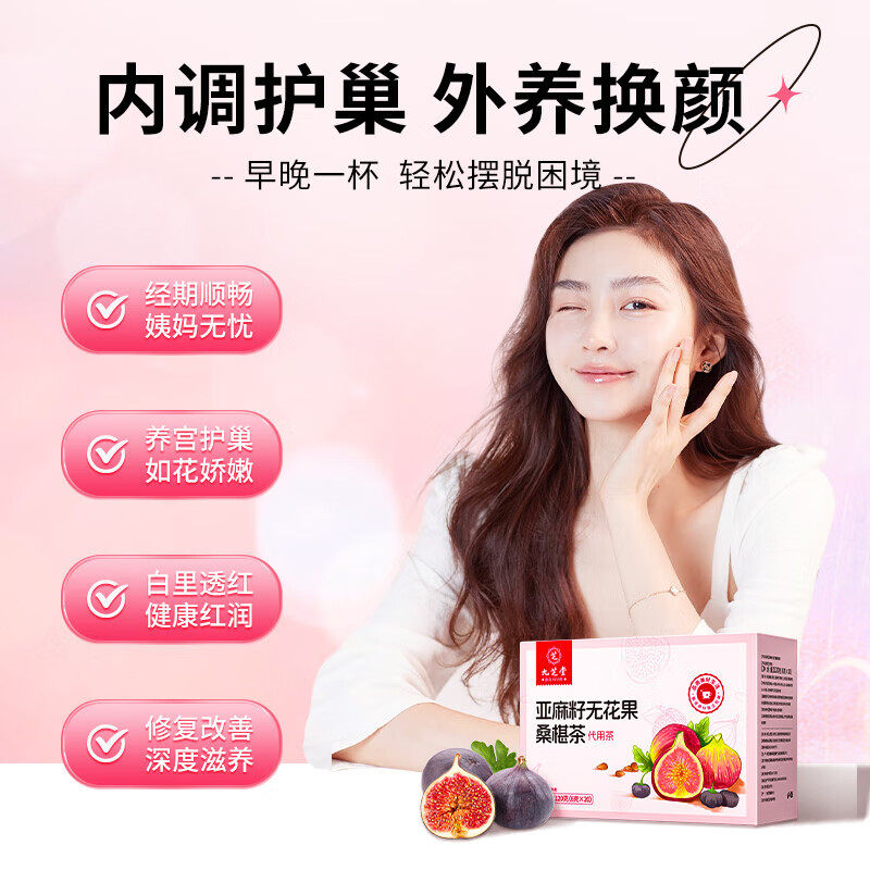 九芝堂亚麻籽无花果桑椹茶黑豆黑枸杞养雌激素茶黄体酮饮种子循环