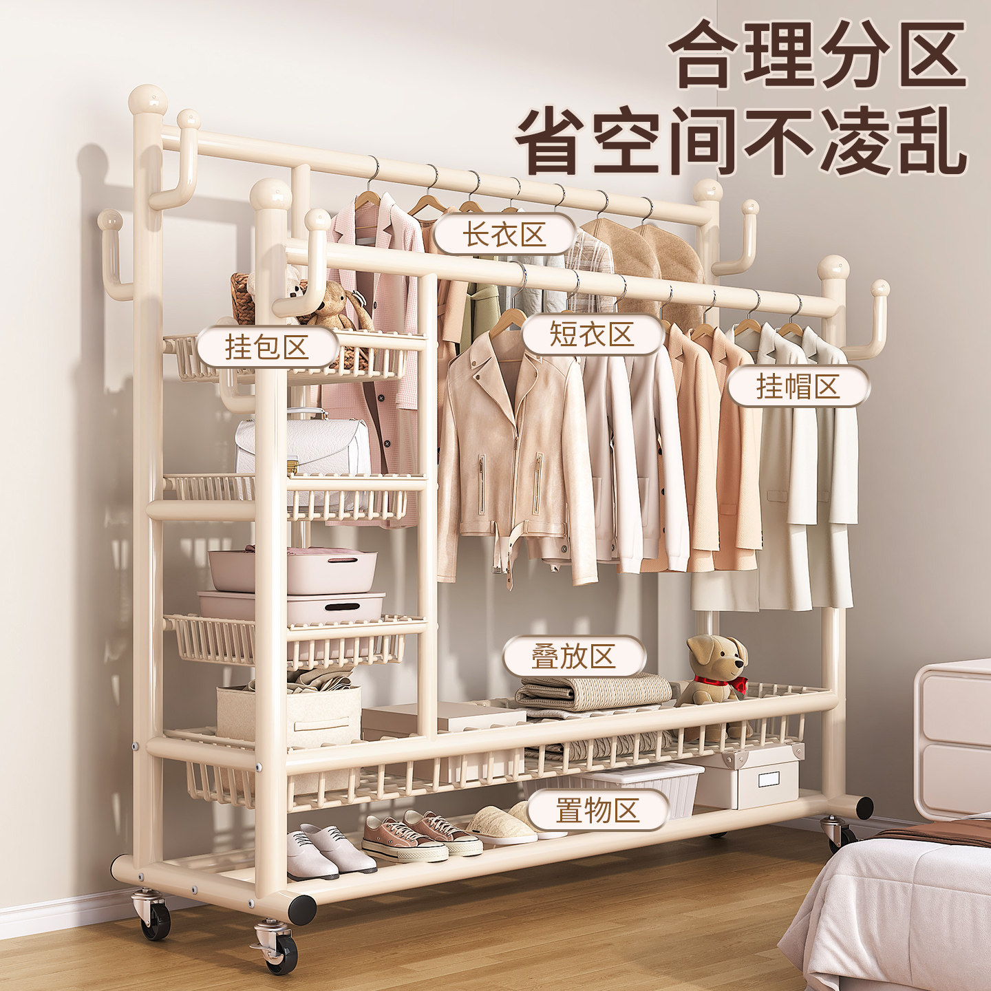 落地晾衣架室内家用可移动房间挂衣服架卧室床边简易衣帽架阳台