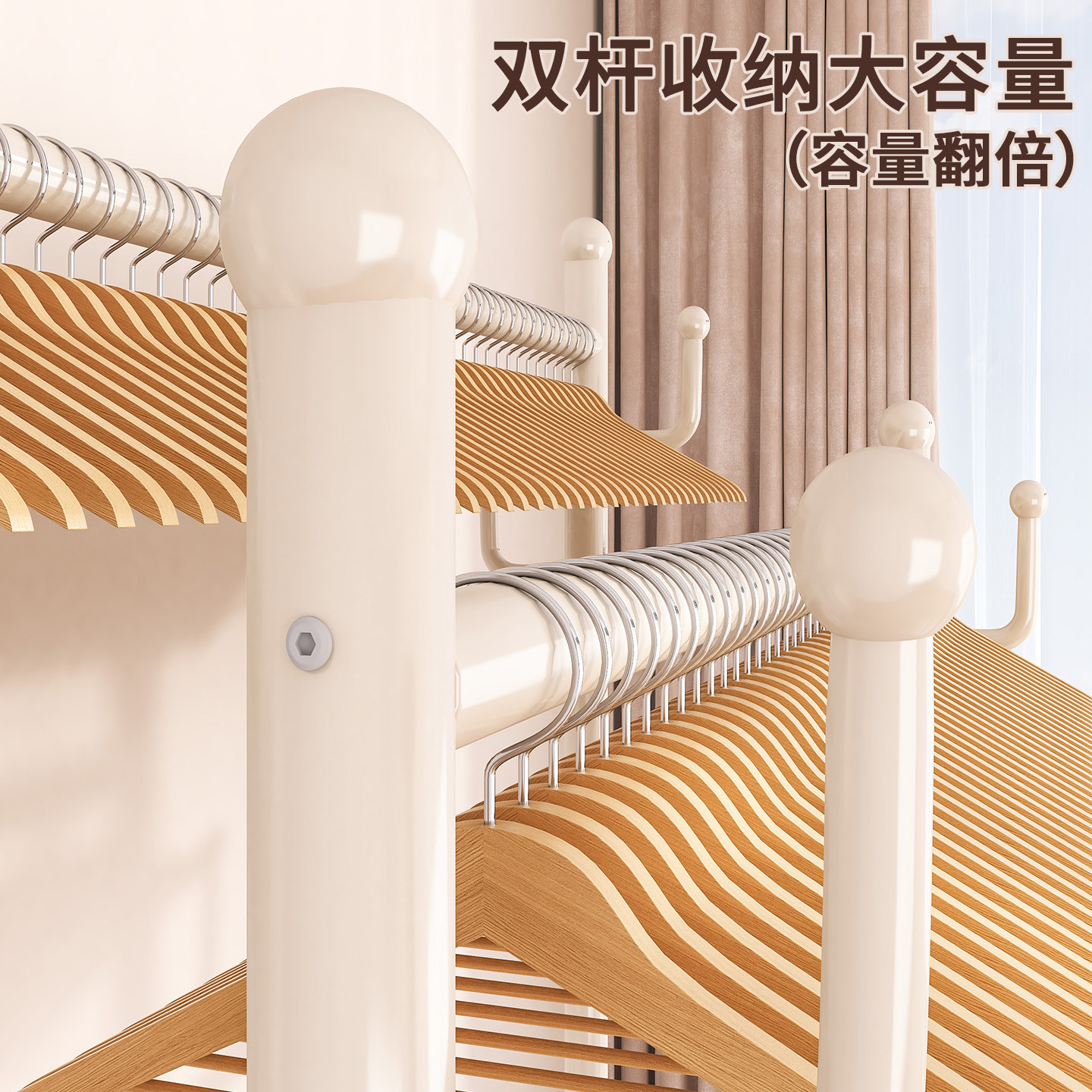 晾衣架落地家用卧室挂衣架宿舍室内双杆双层晒衣服架子简易凉衣杆