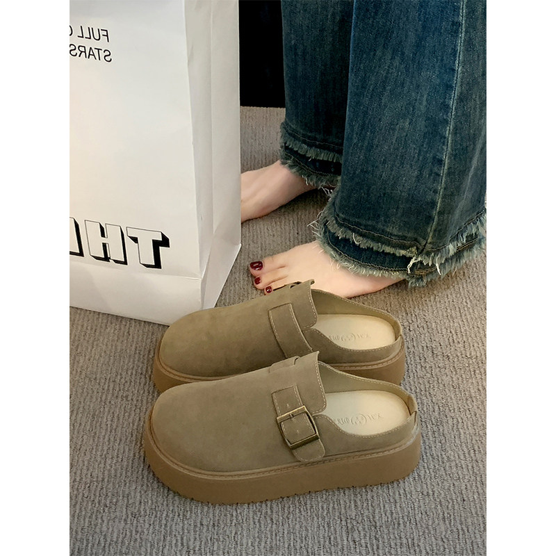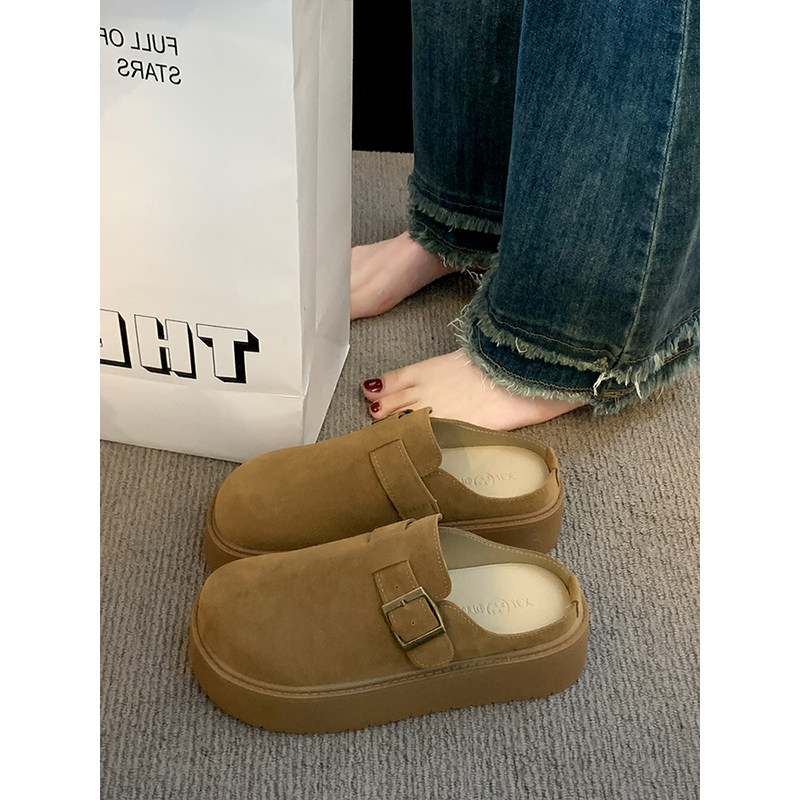 厚底勃肯鞋女2025新款冬季女鞋加绒半拖一脚蹬穆勒鞋子增高博肯鞋