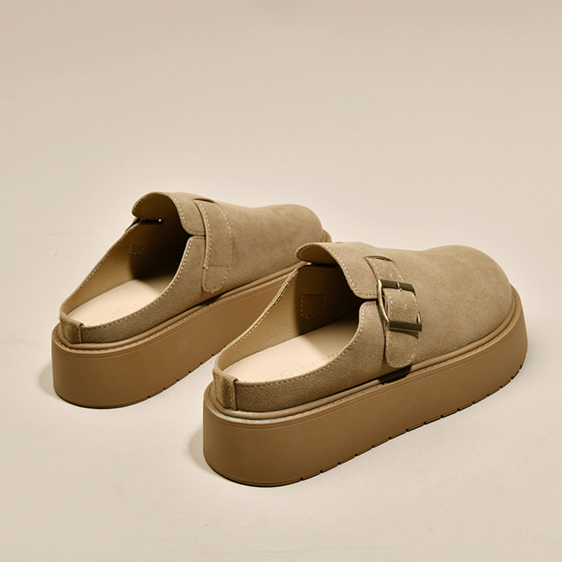 内增高6cm~厚底真皮勃肯鞋女2025秋冬新款真皮包头半拖鞋女外穿