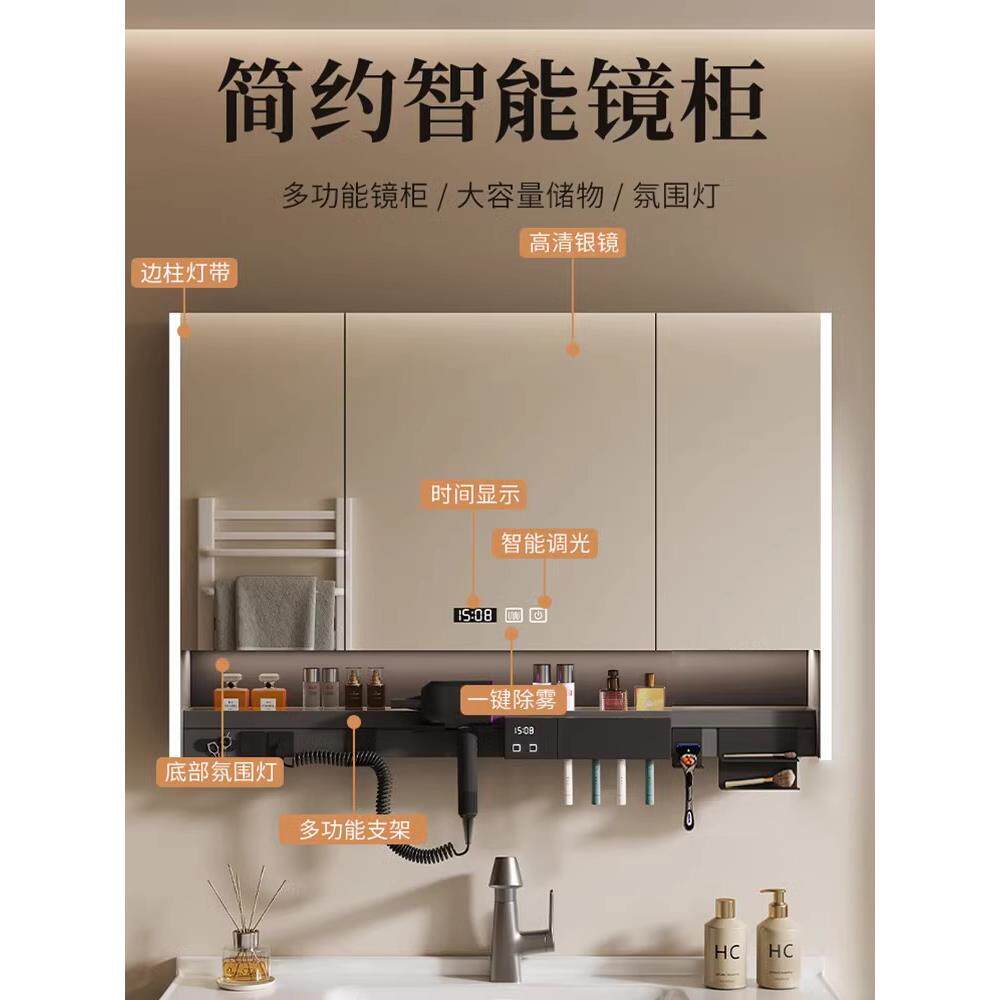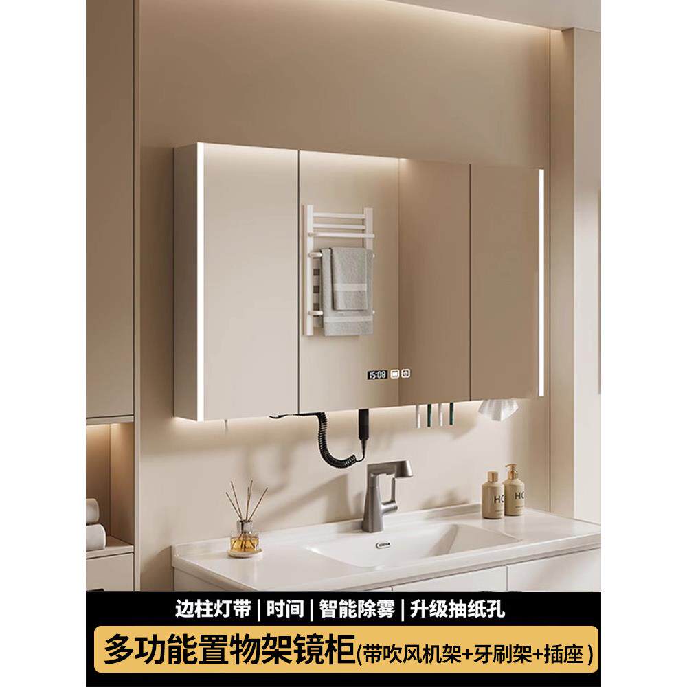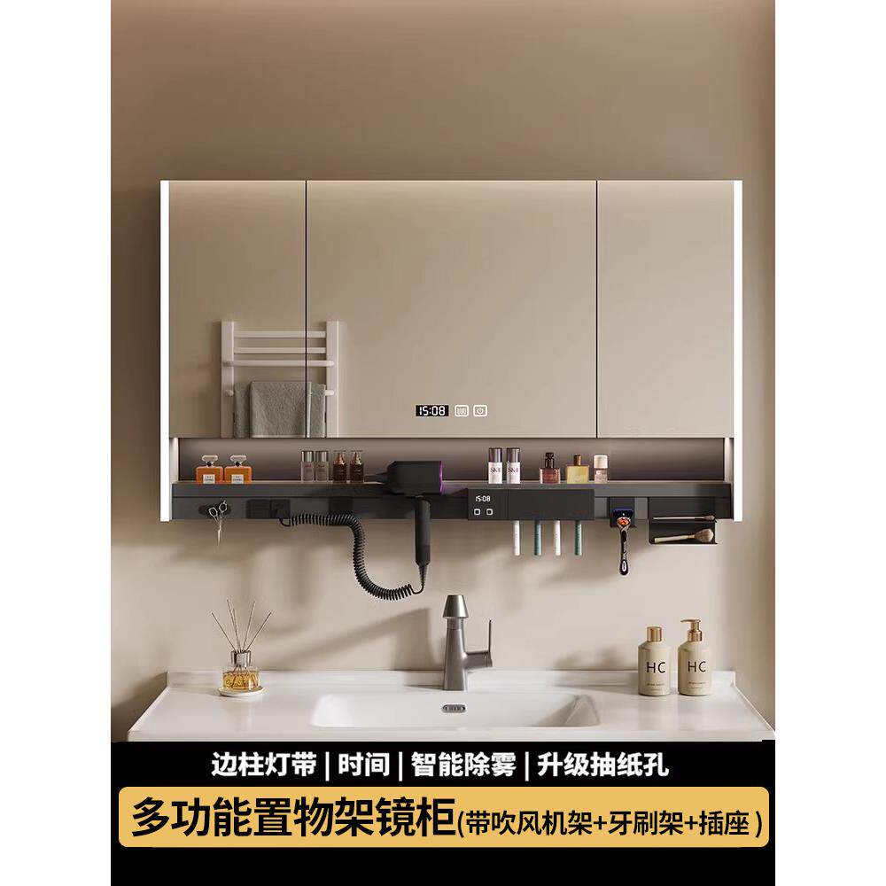 智能浴室镜柜单独挂墙式带灯防雾卫生间镜子电吹风机架收纳一体柜