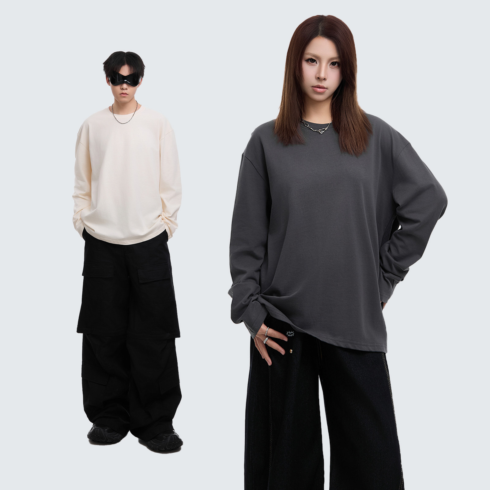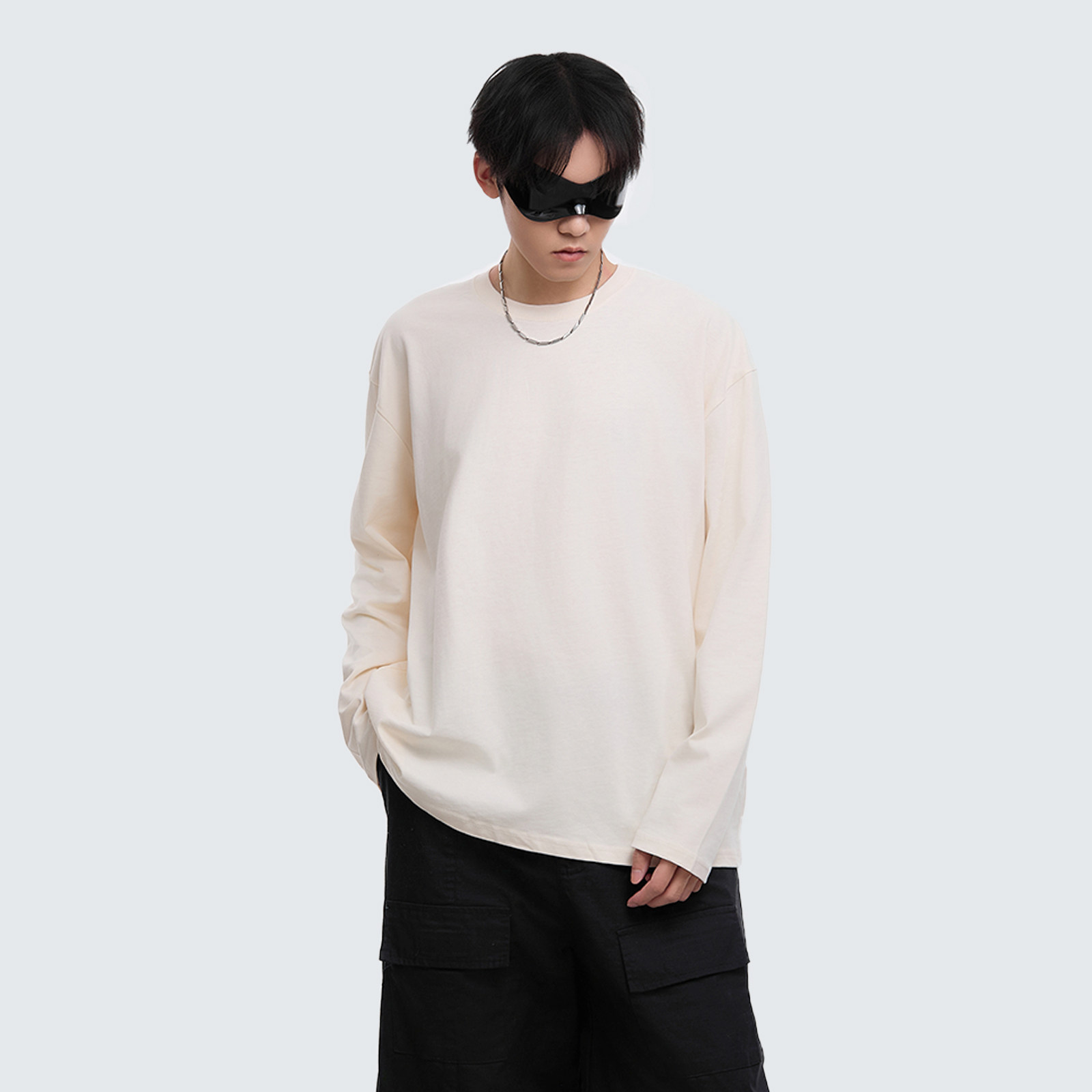 INS纯棉25韩国ins复古基础款纯色秋季打底衫内搭男女长袖T恤bf风