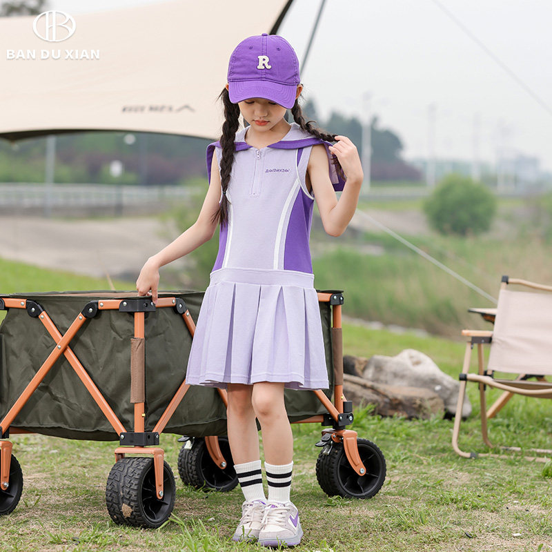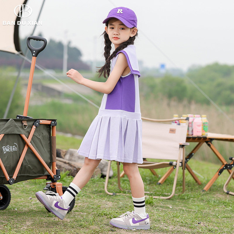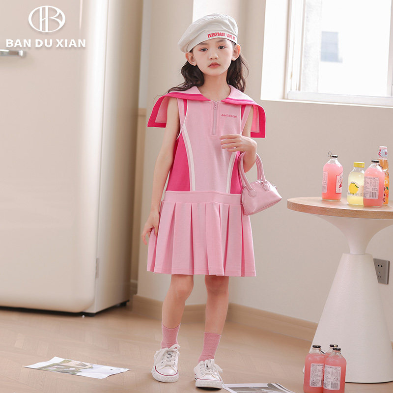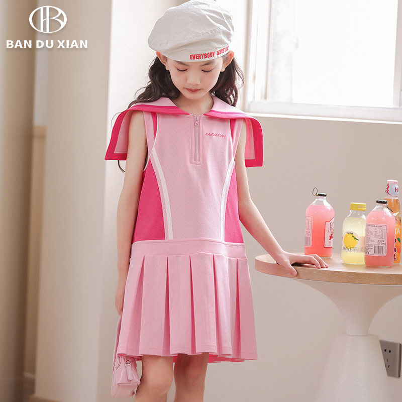 半度闲童装亲子装女童夏装无袖连衣裙中大童