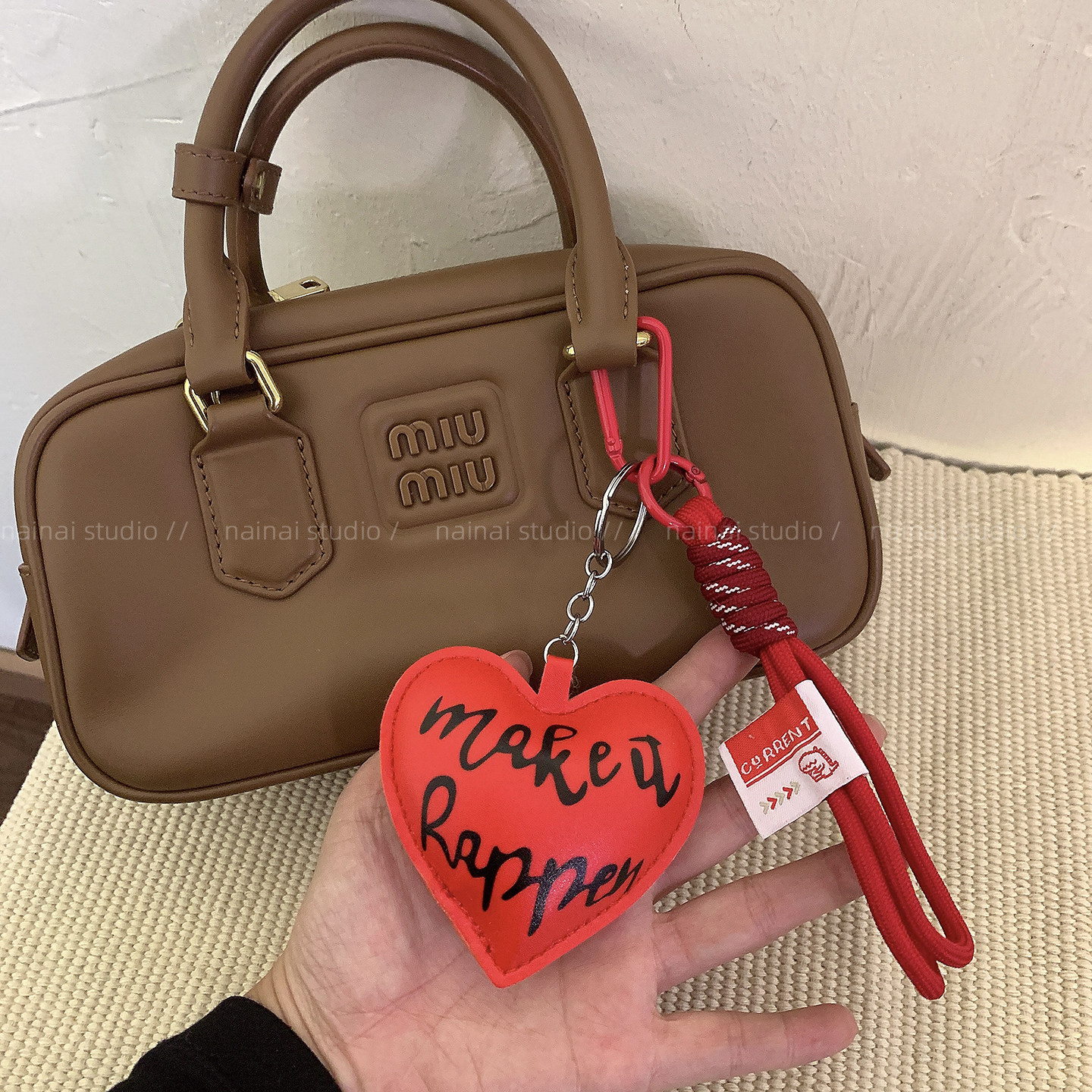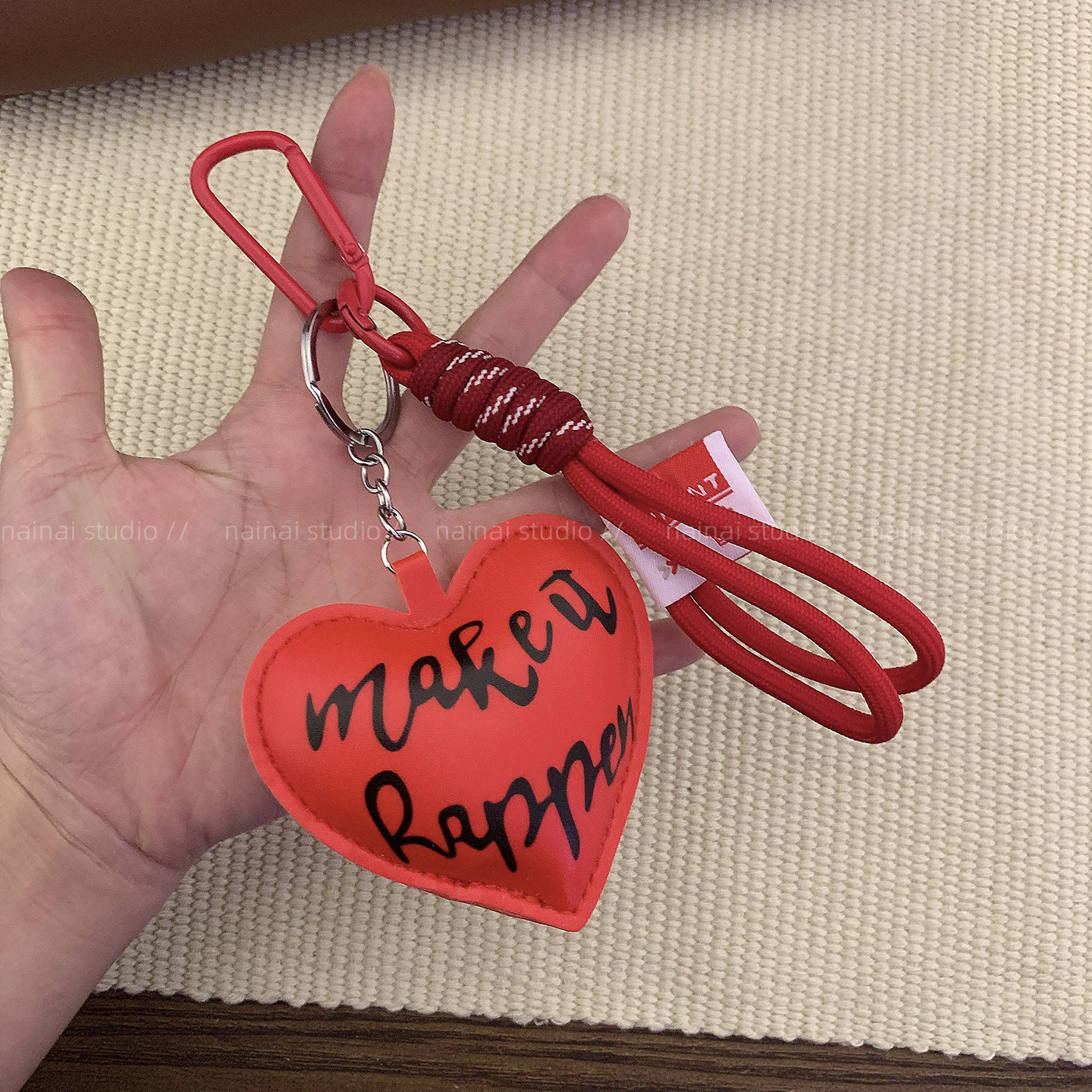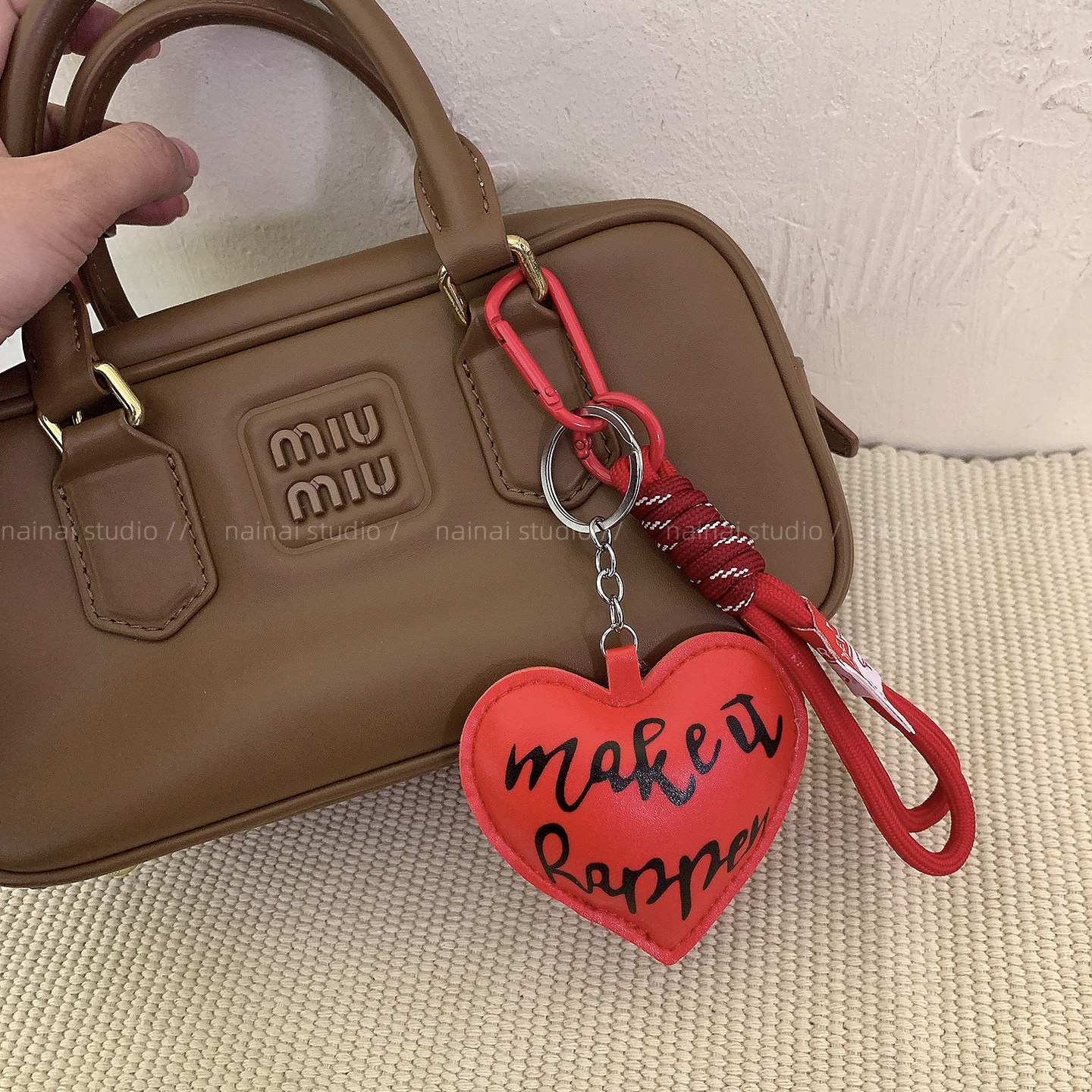 红色爱心挂件~皮革字母新年过年包包挂饰车钥匙扣书包miu系配饰A