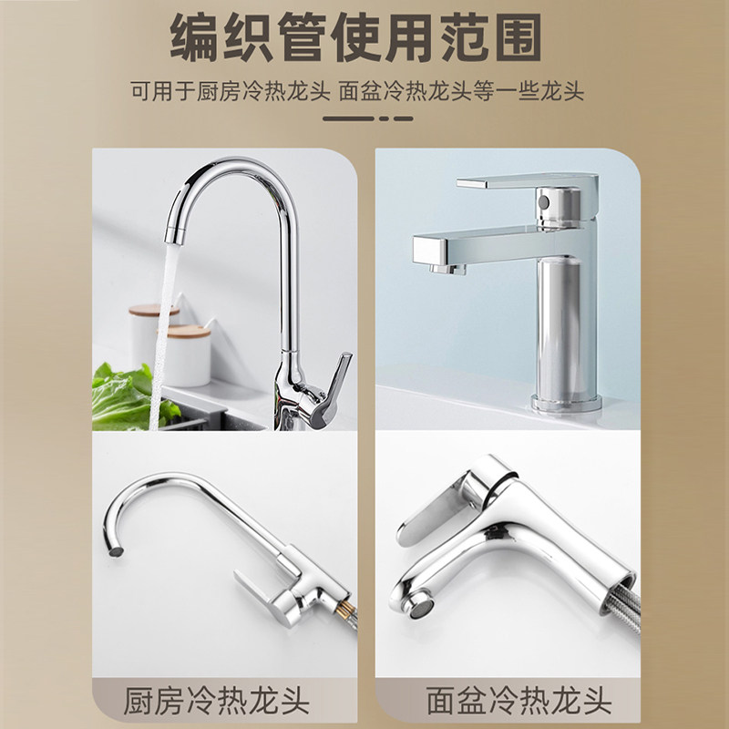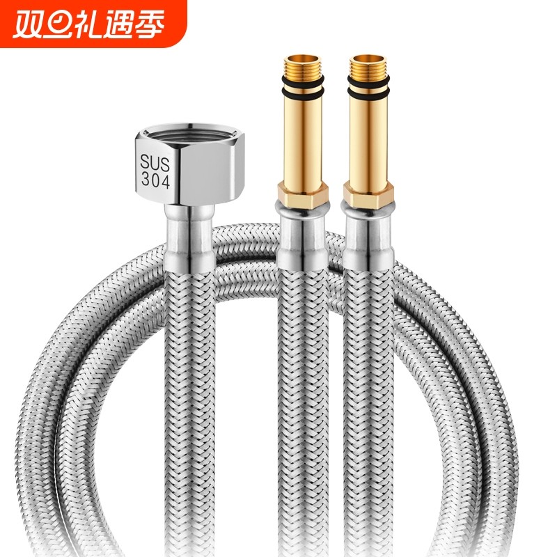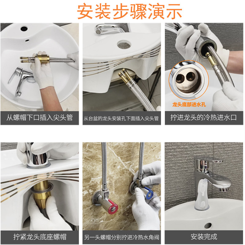 水龙头进水管防爆冷热上水管304不锈钢编织尖头软管配件高温热水