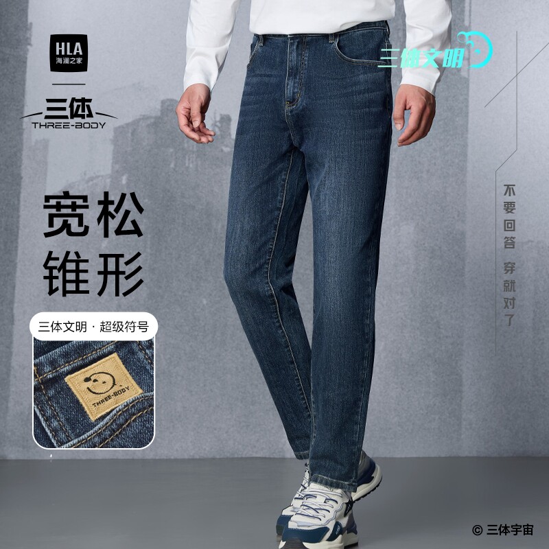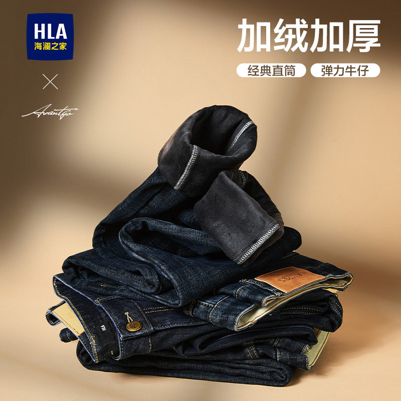 HLA/海澜之家山不在高水洗直筒微弹牛仔裤春秋季新休闲长裤子男士