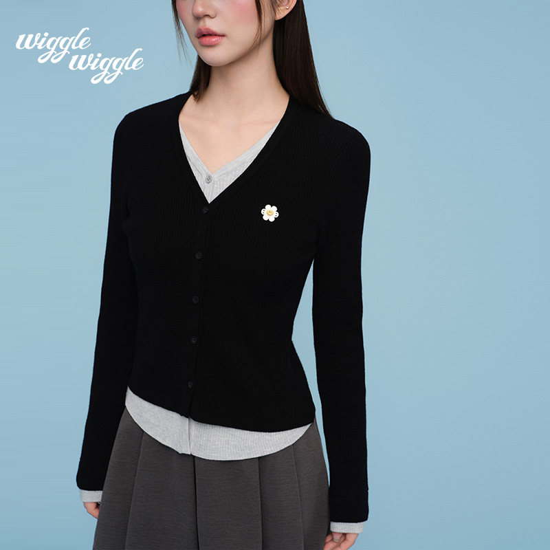 【徐若晗同款】wigglewiggle26早春复古毛衣V领针织开衫百搭上衣