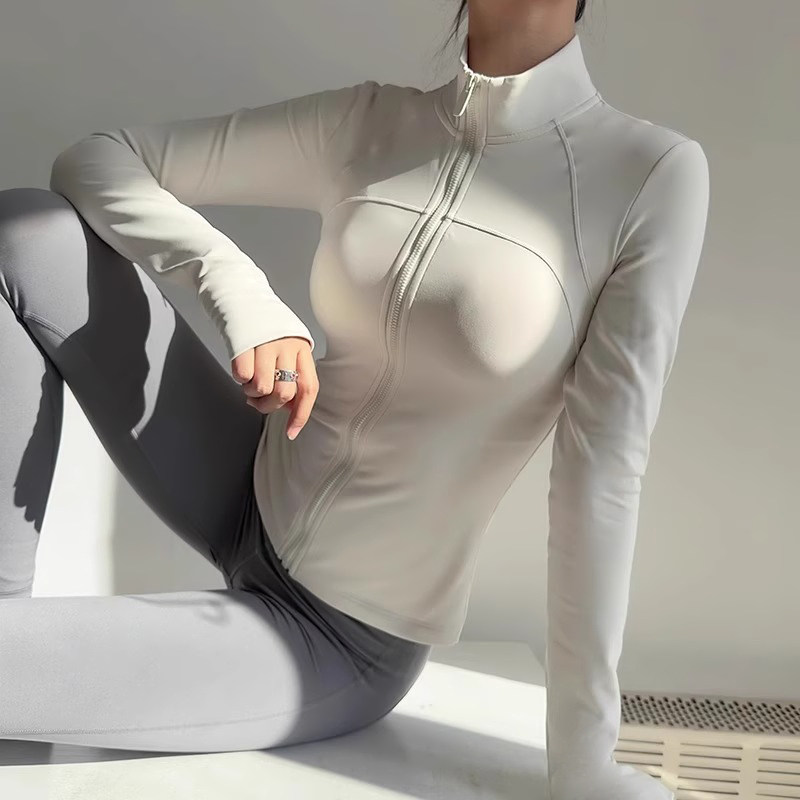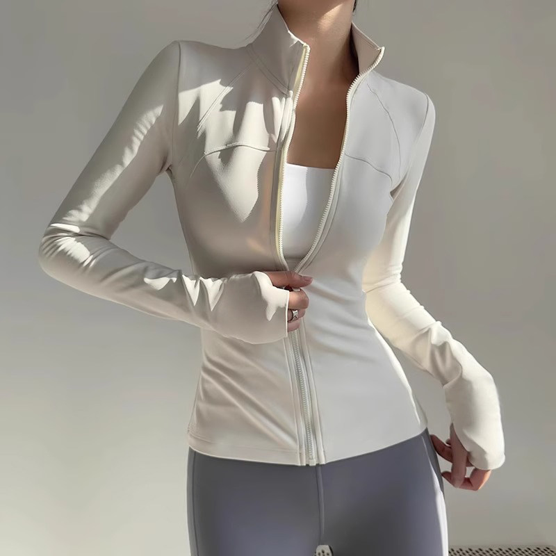 加绒运动外套女显瘦健身服弹力瑜伽服套装上衣秋冬款薄绒速干白色