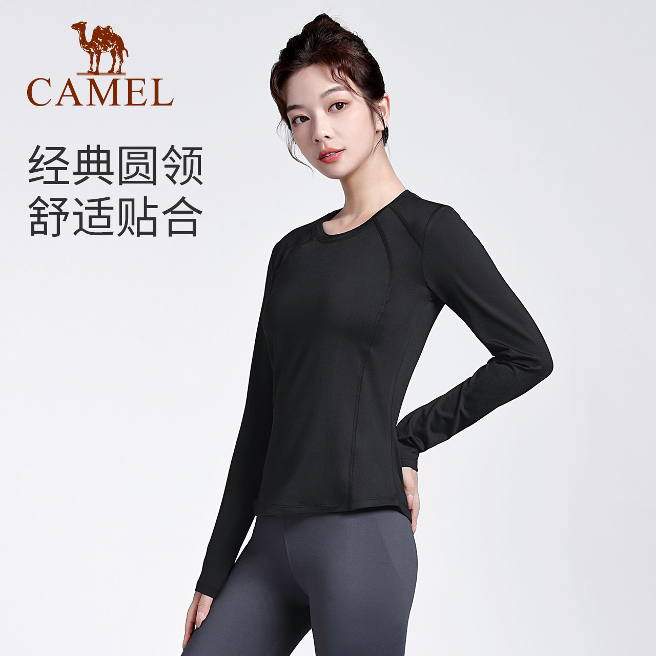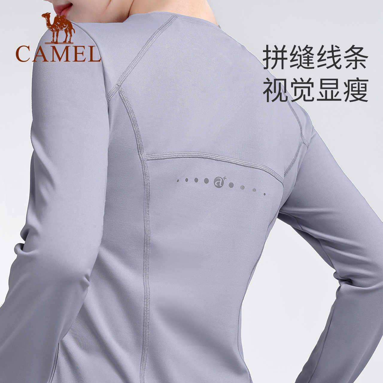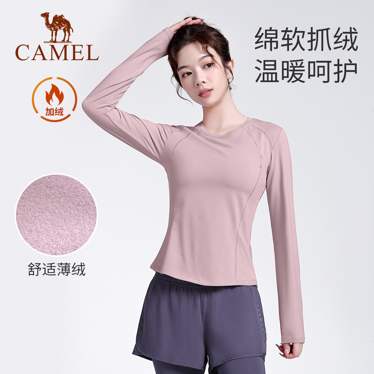 骆驼瑜伽服女款薄绒长袖秋冬健身服T恤跑步服上衣运动服紧身衣服