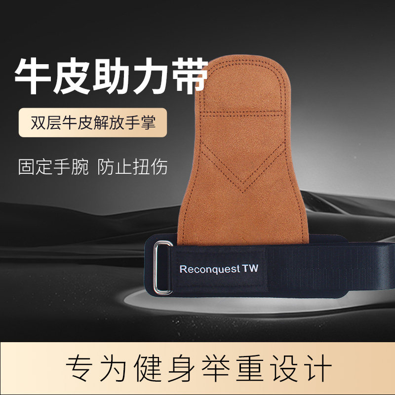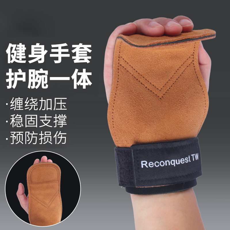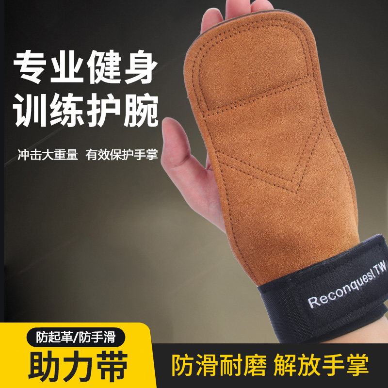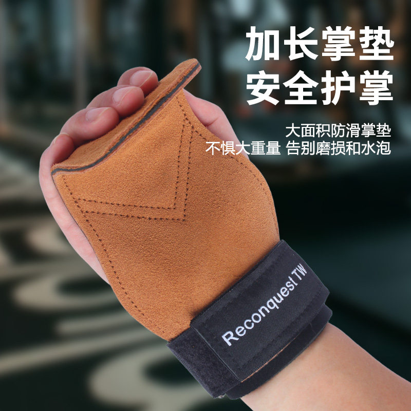 牛皮护掌三层加厚硬拉拉力助力带健身手套引体器械训练单杠杠铃